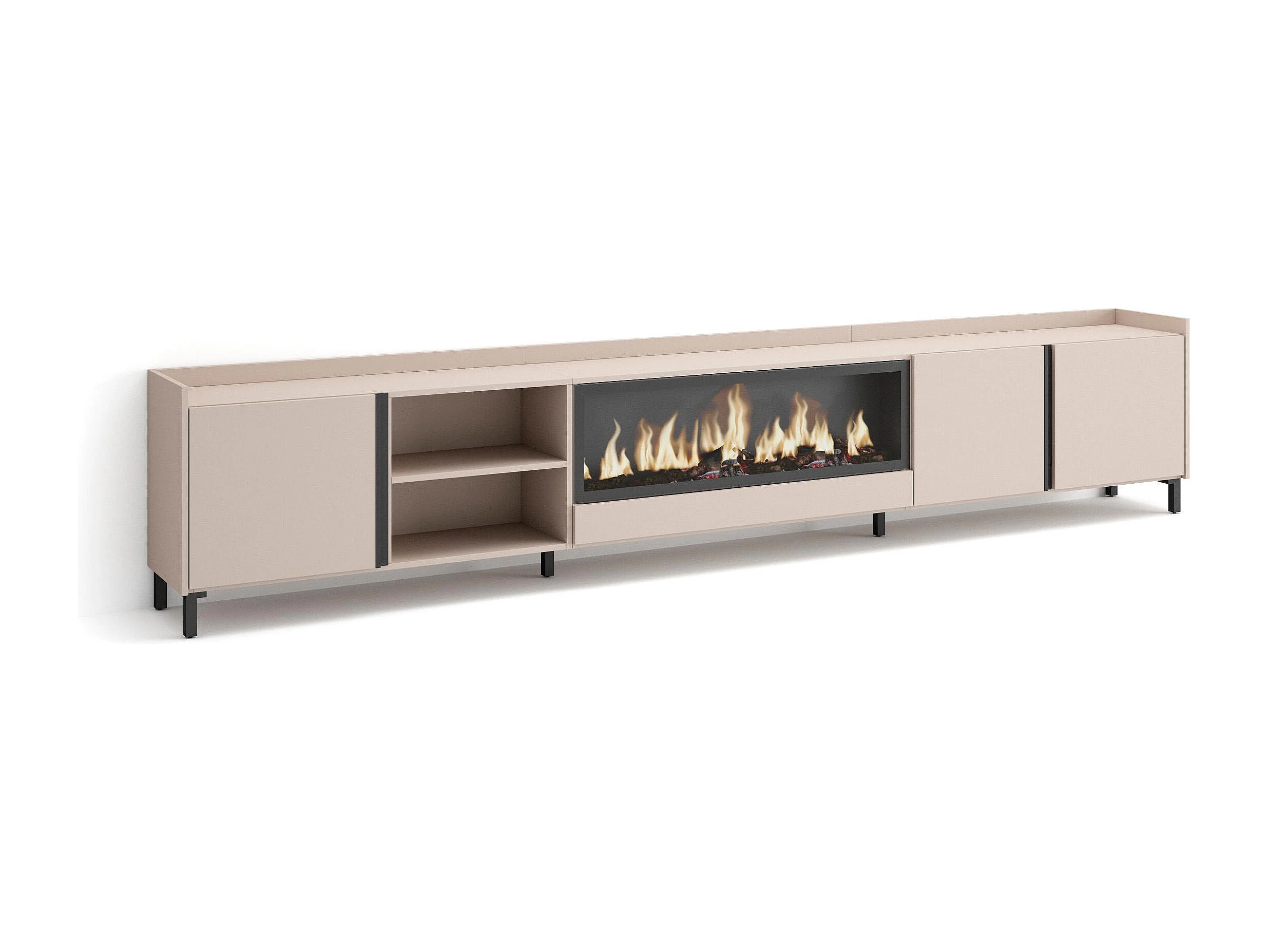 TV-Meubel, Lowboard, 315x61x35 cm, Voor tv's tot 80", Elektrische haard XXL, Industrieel design, Beige