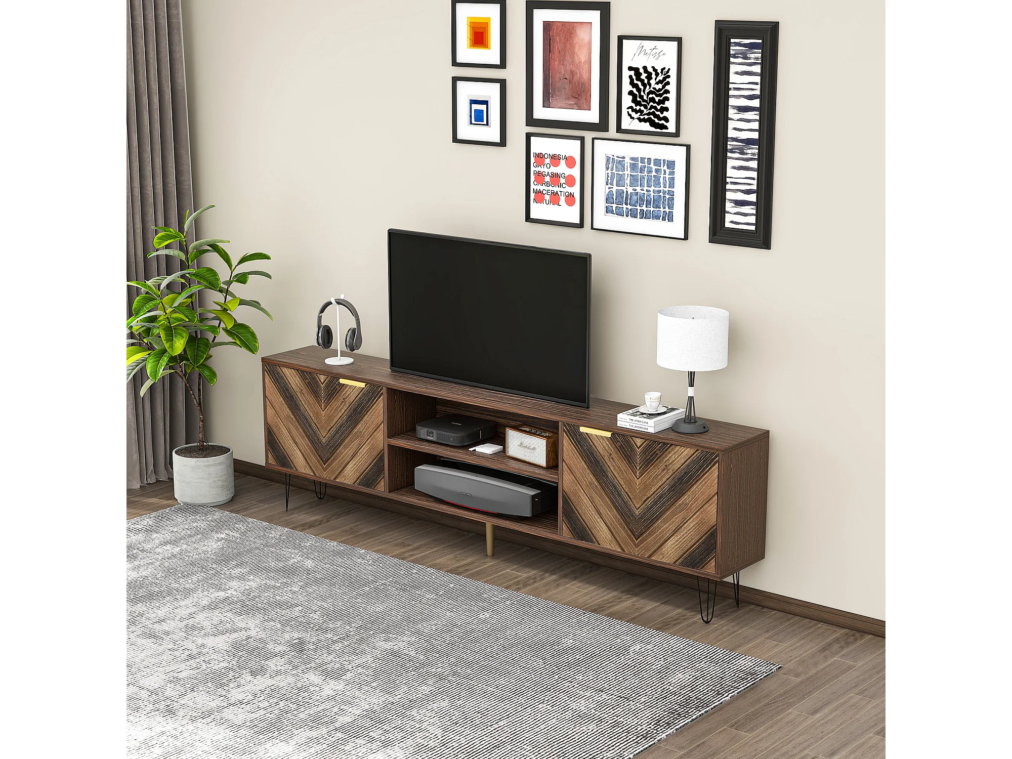 TV-meubel met 2 deuren - Metalen poten - Donker hout