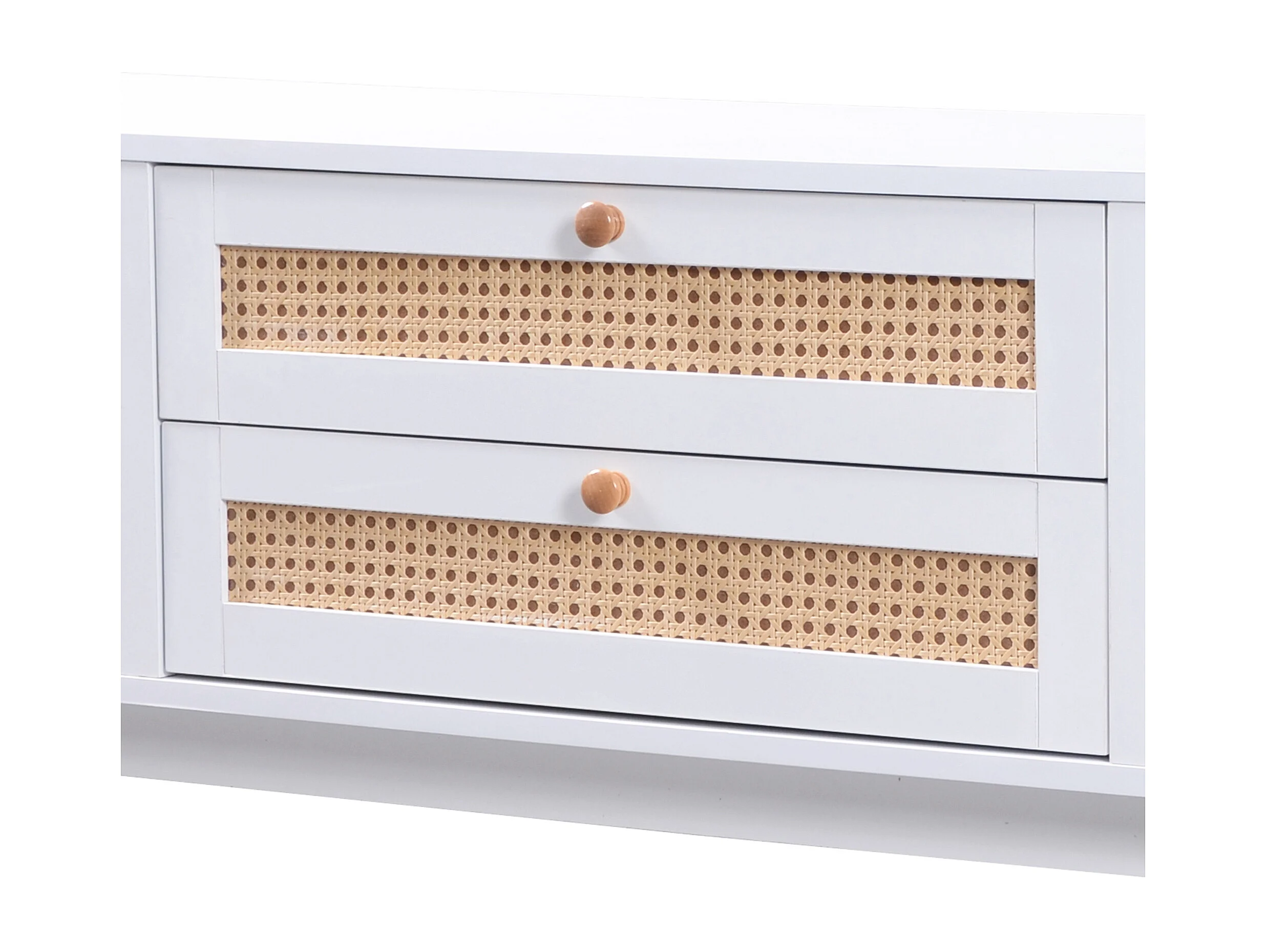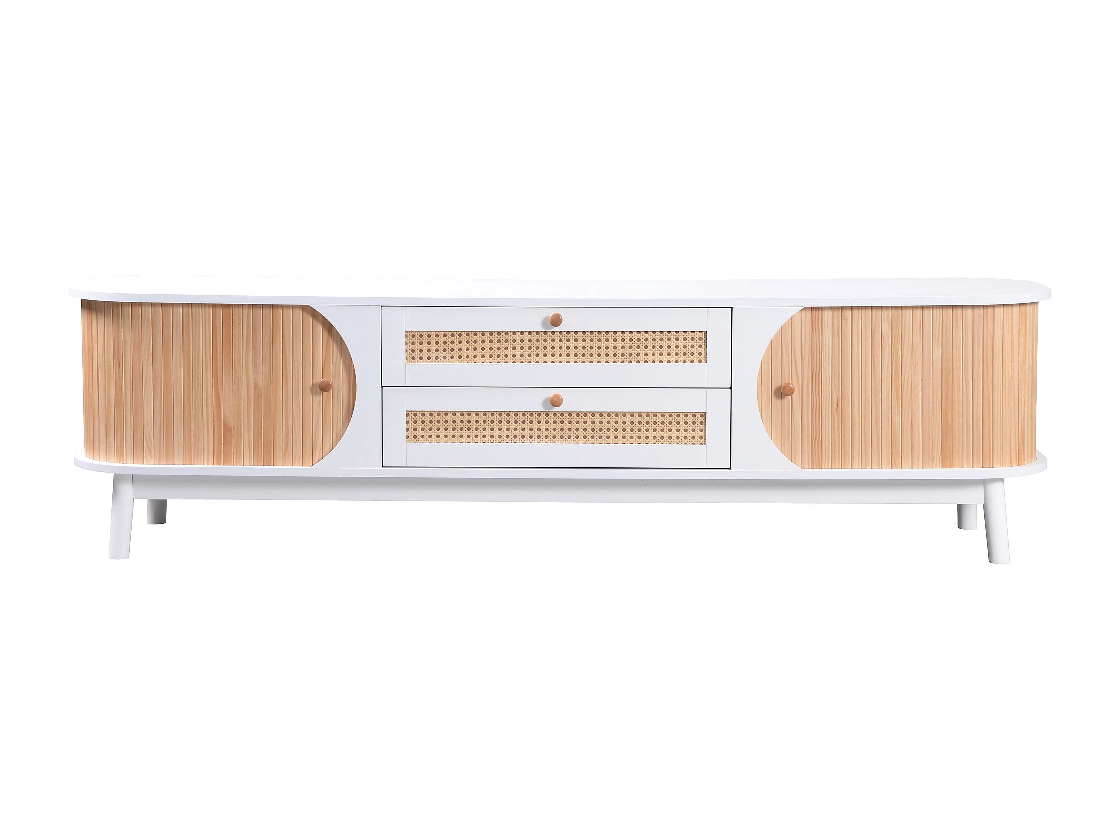 Tv-meubel met 2 schuifdeuren en 2 lades - Wit en hout
