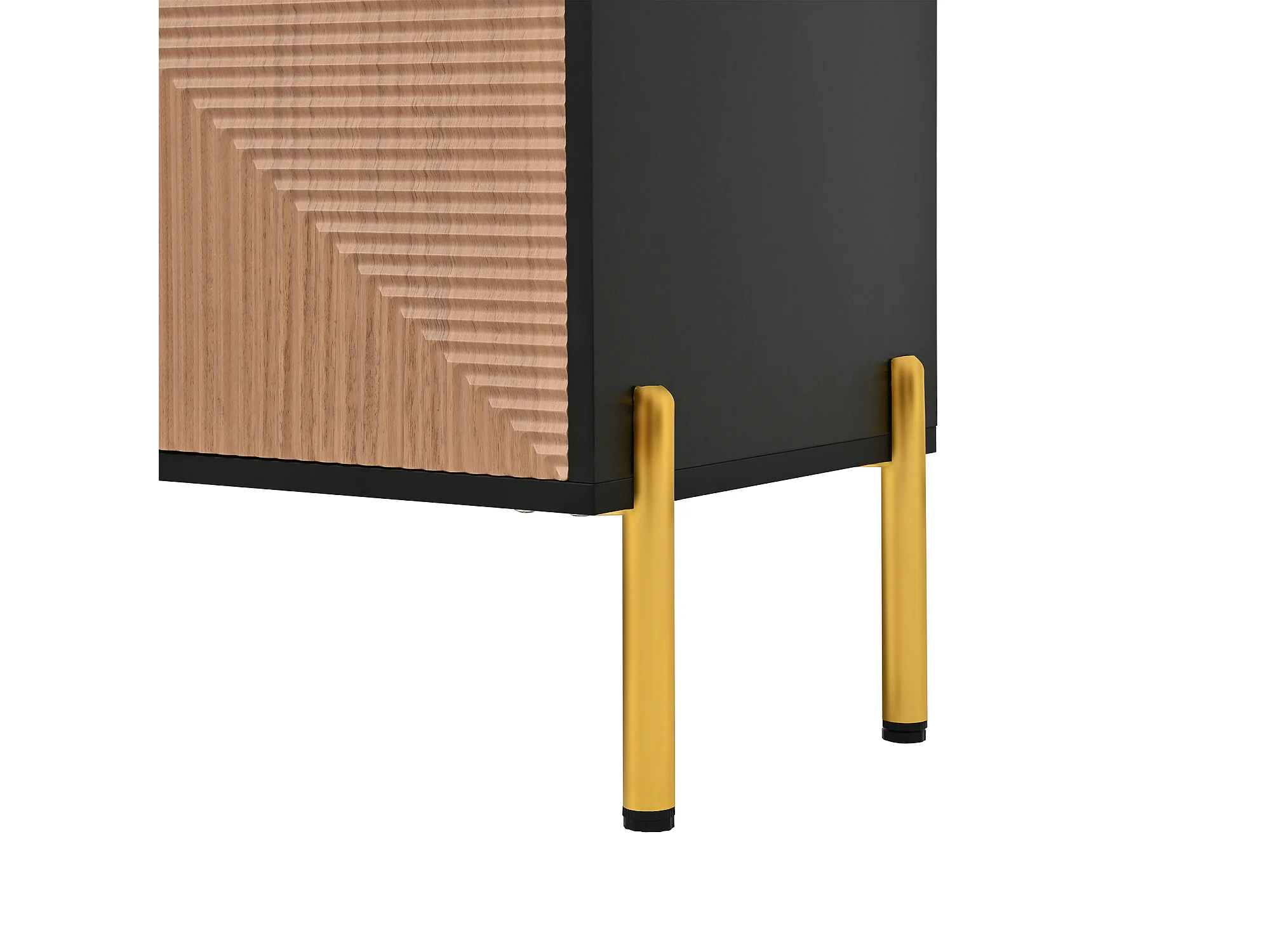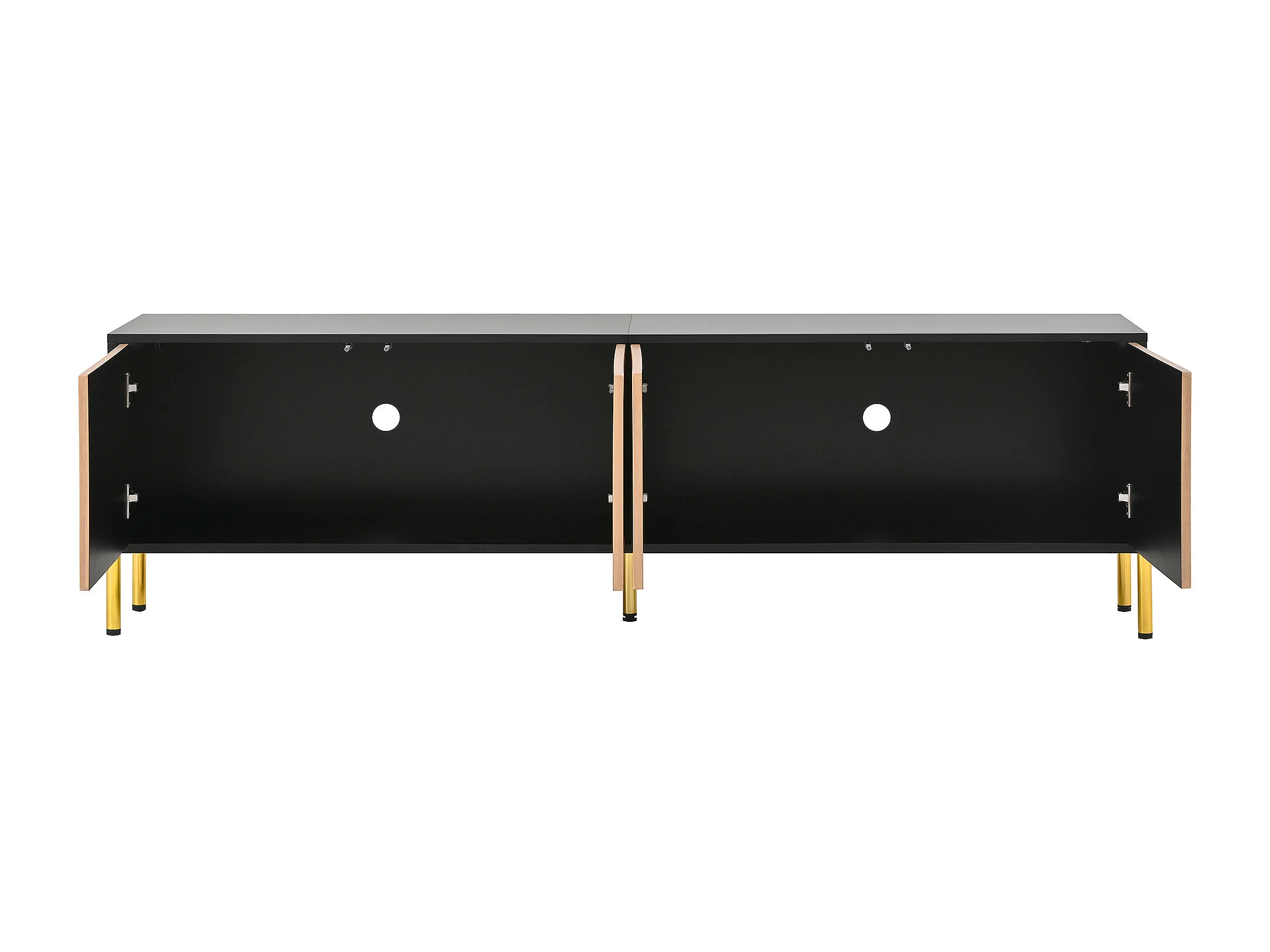 Tv-meubel met 4 deuren met structuurafwerking - Tweekleurig ontwerp in zwart en hout