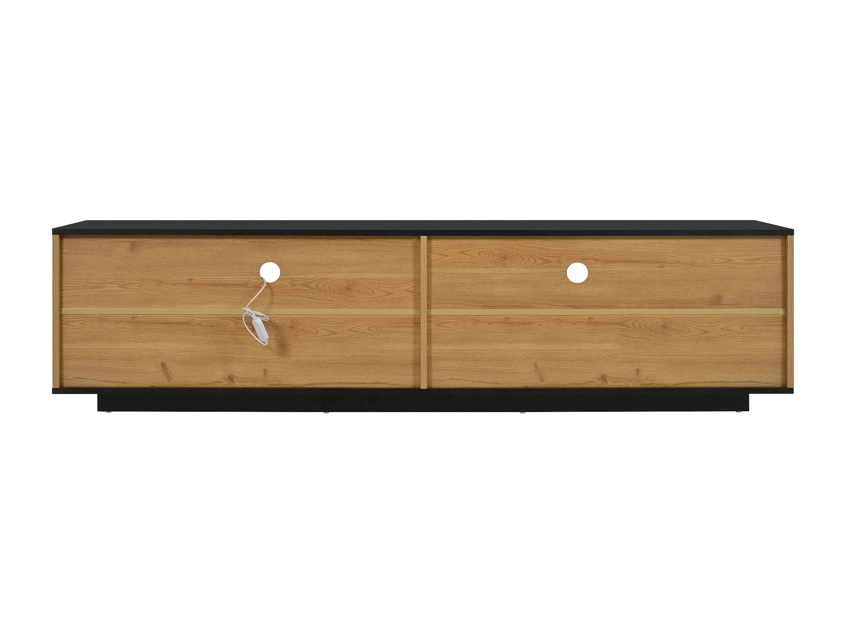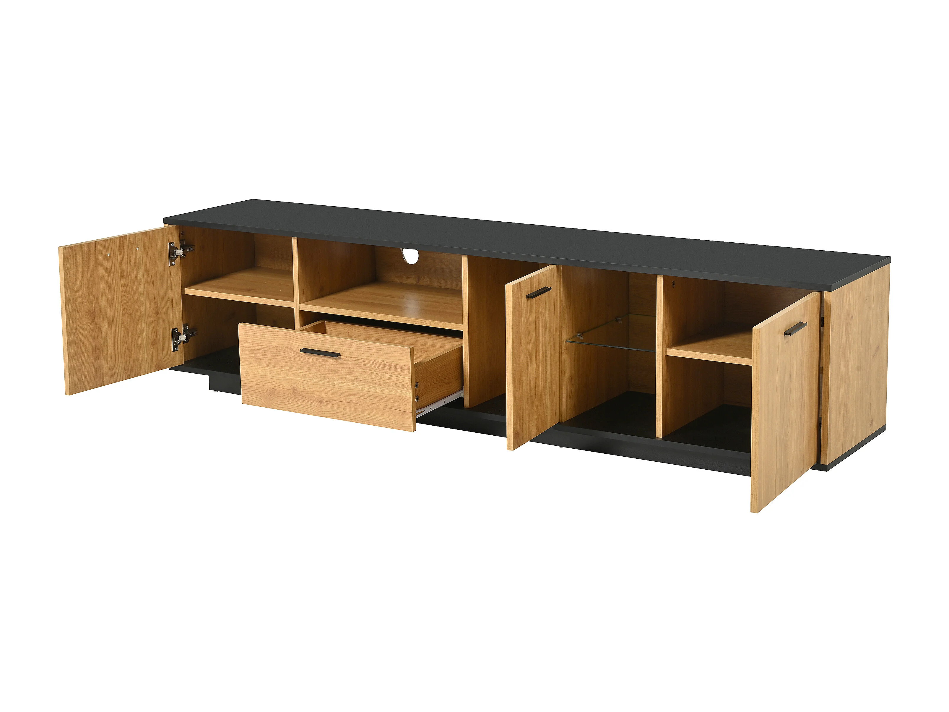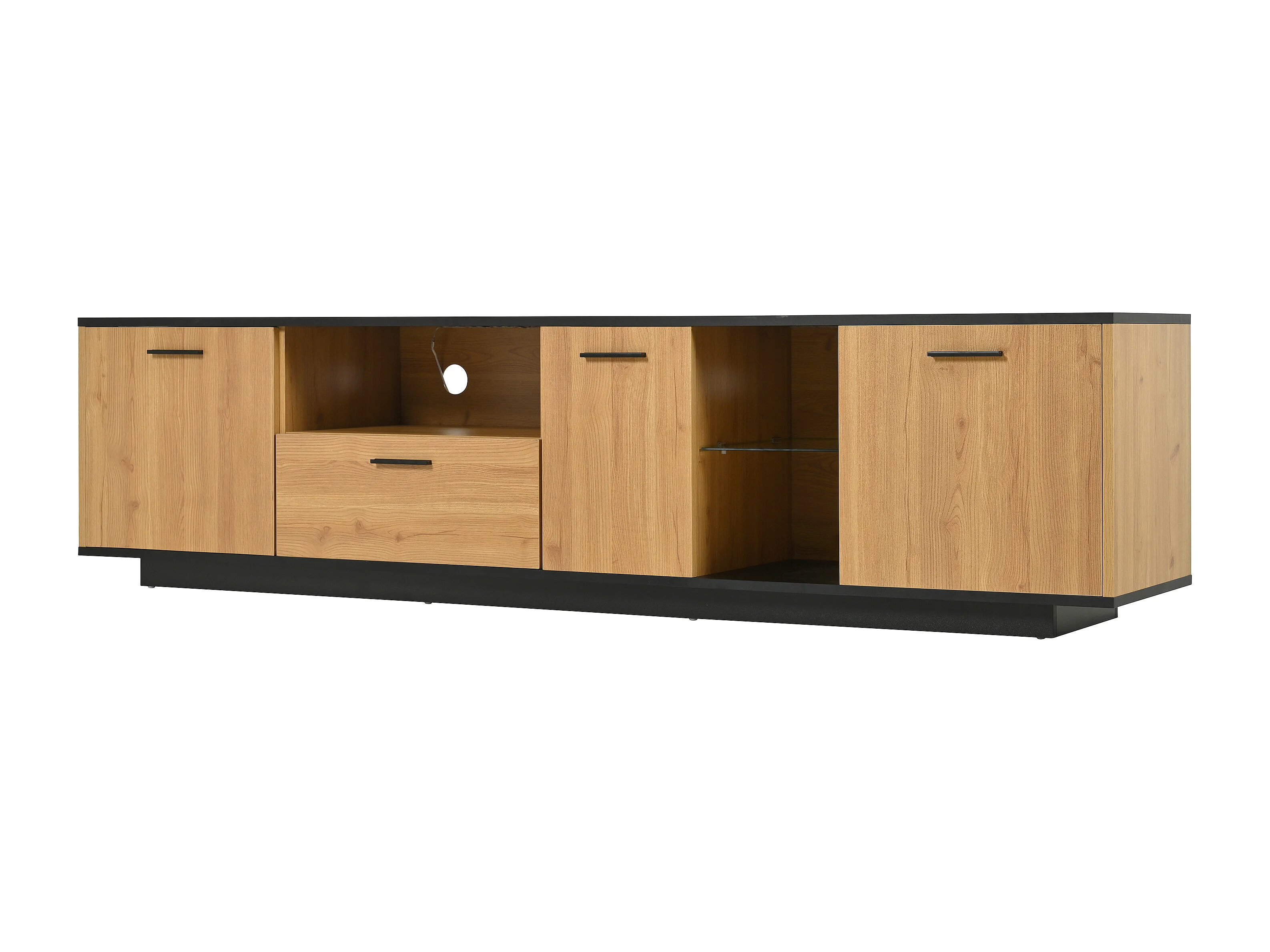 Tv-meubel met één lade, drie deuren en ledverlichting - Zwart blad - Licht natuurlijk