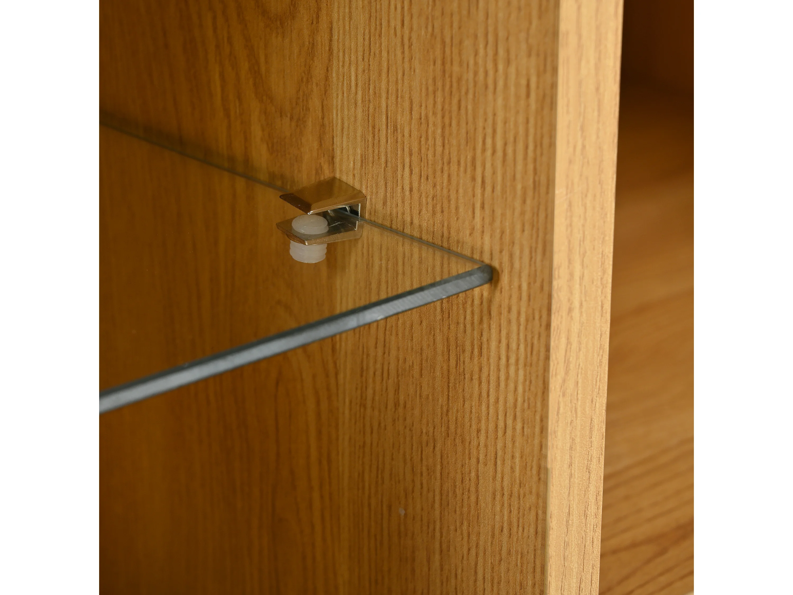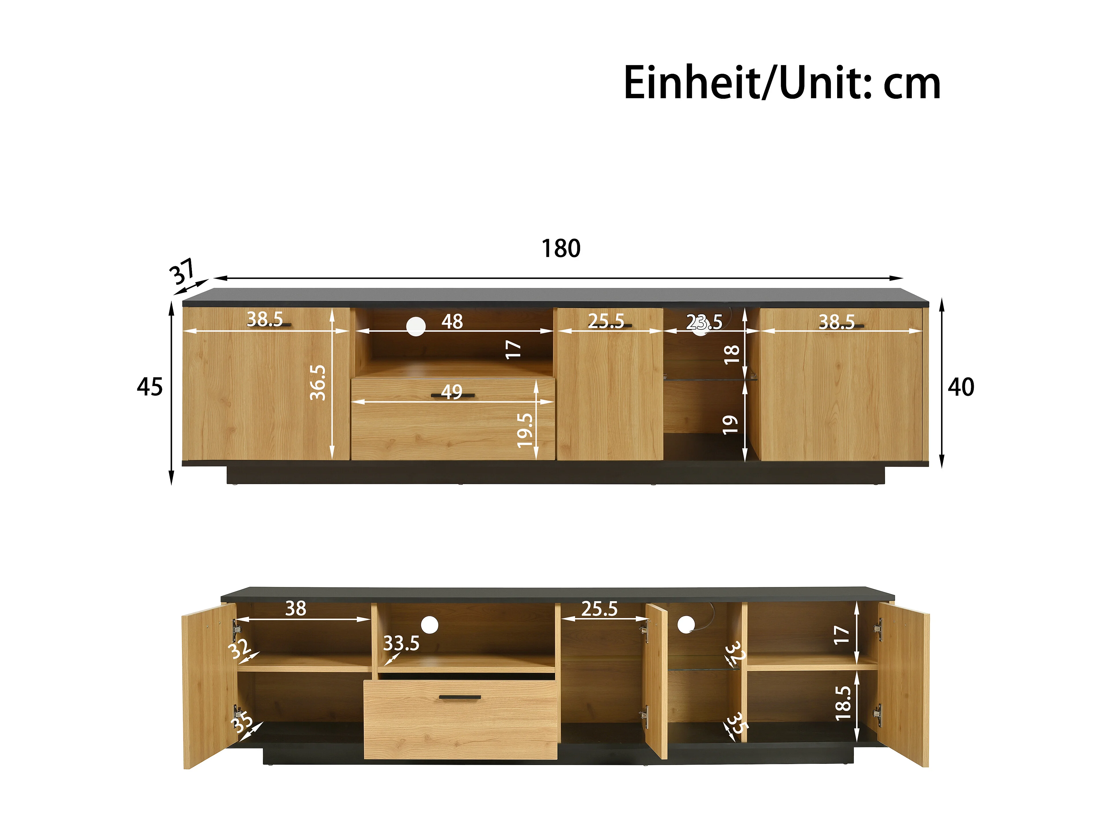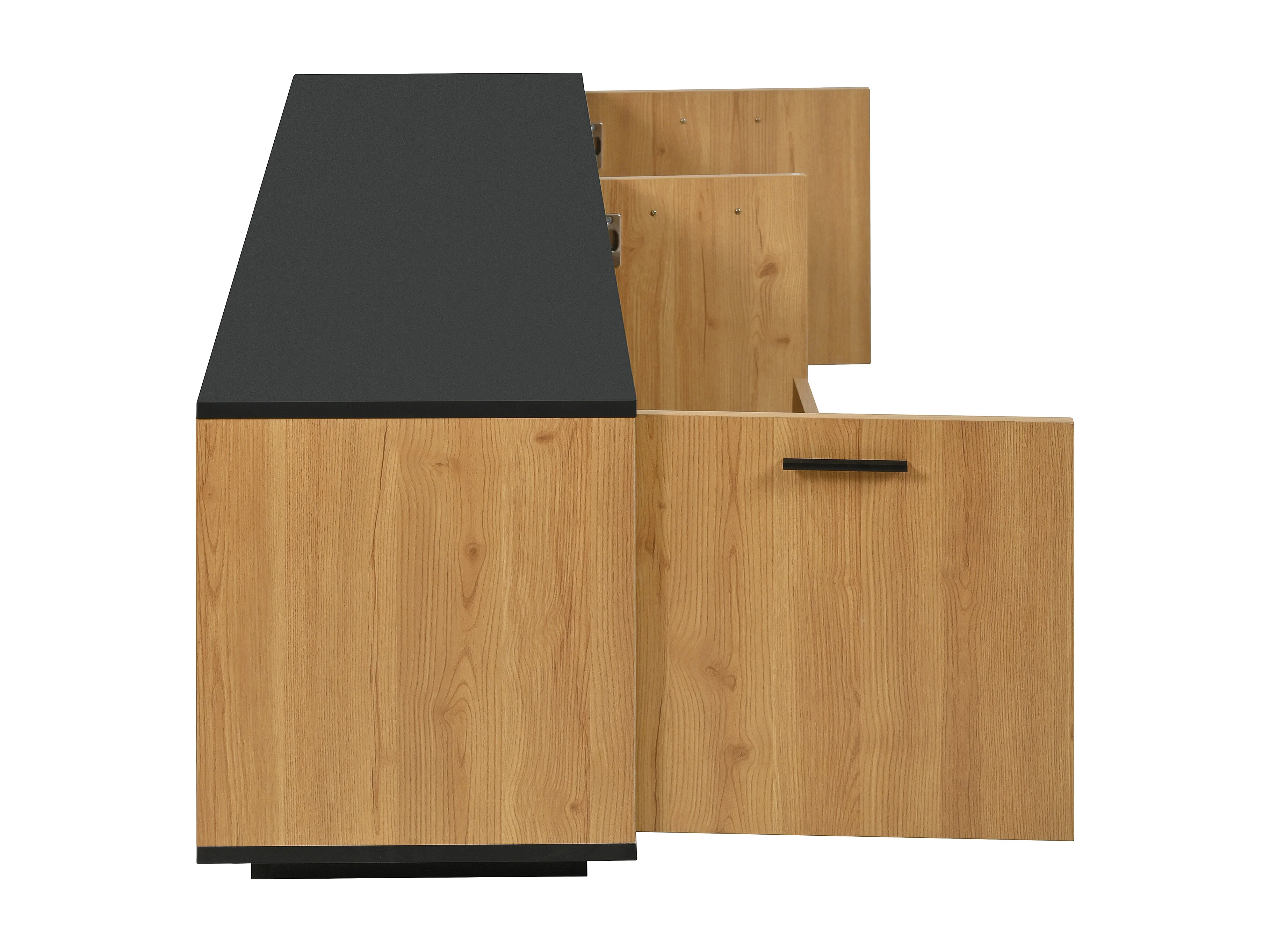 Tv-meubel met één lade, drie deuren en ledverlichting - Zwart blad - Licht natuurlijk