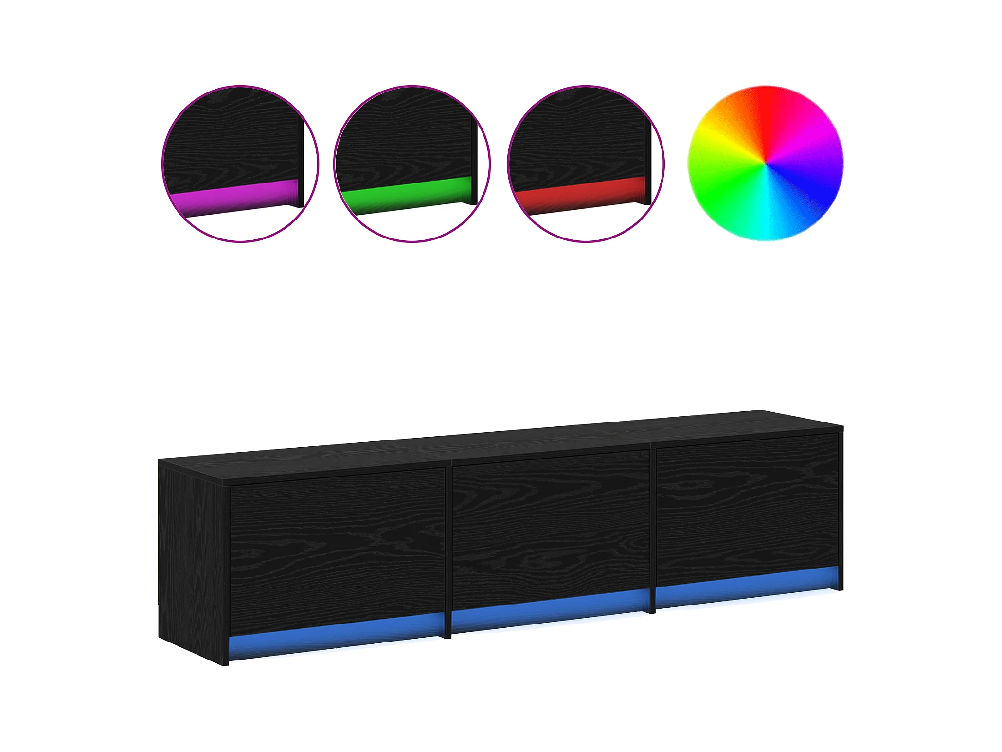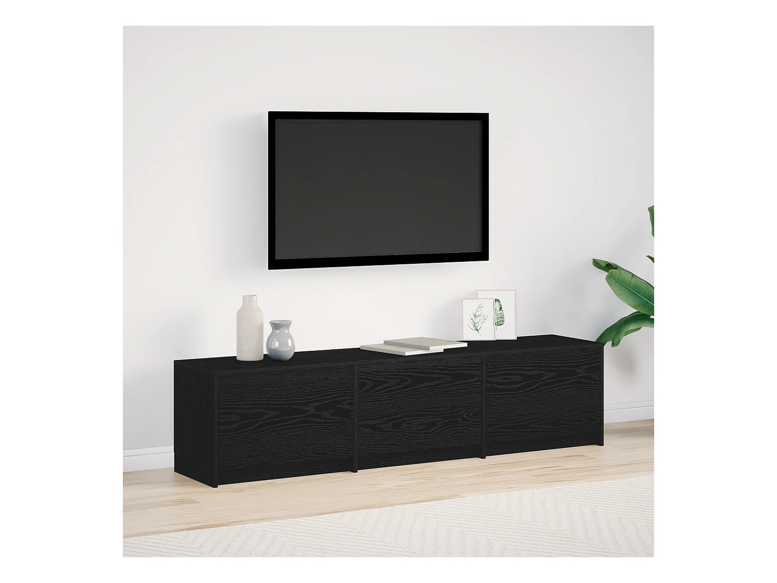 Zwarte eiken LED tv-kast 30,5x30x102 cm Technisch hout