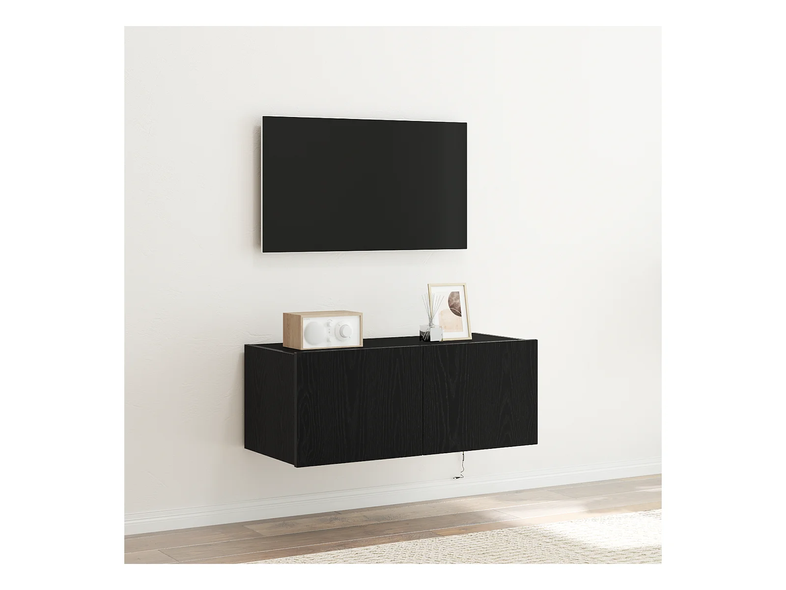 Zwarte eiken LED tv-kast 30,5x30x102 cm Technisch hout