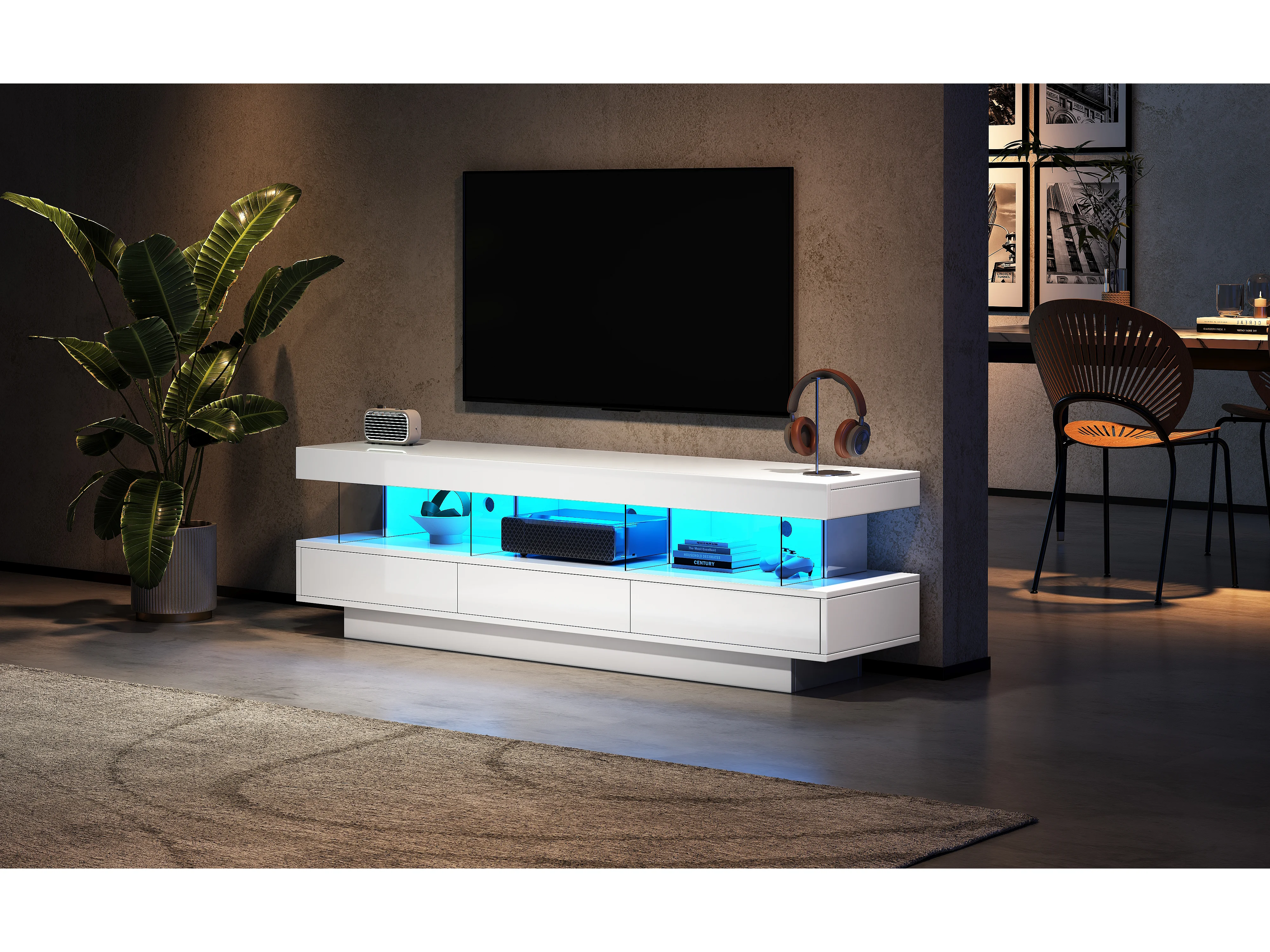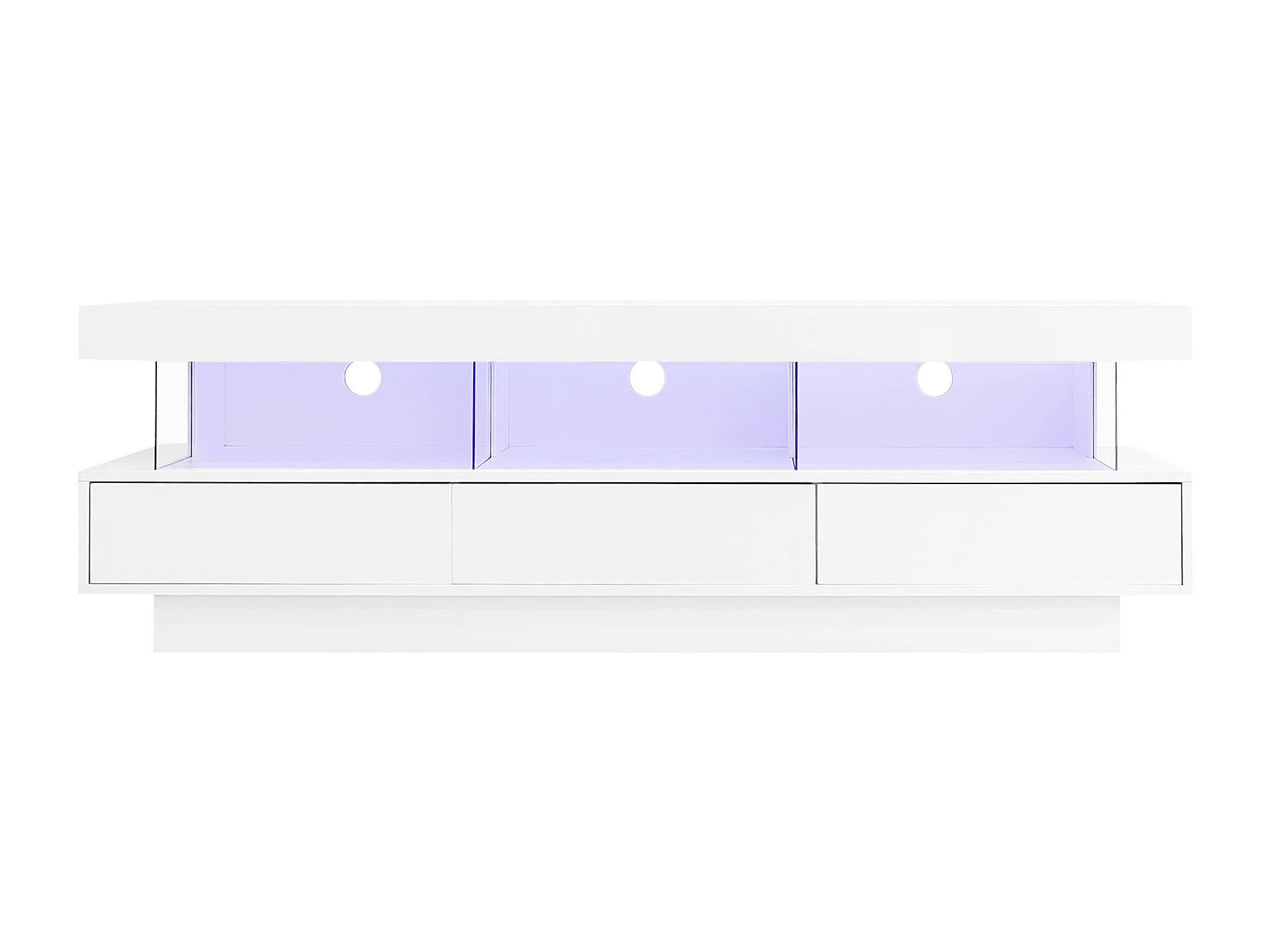 Tv-meubel met ledverlichting, 3 lades en 3 glazen planken - Glanzend witte lak