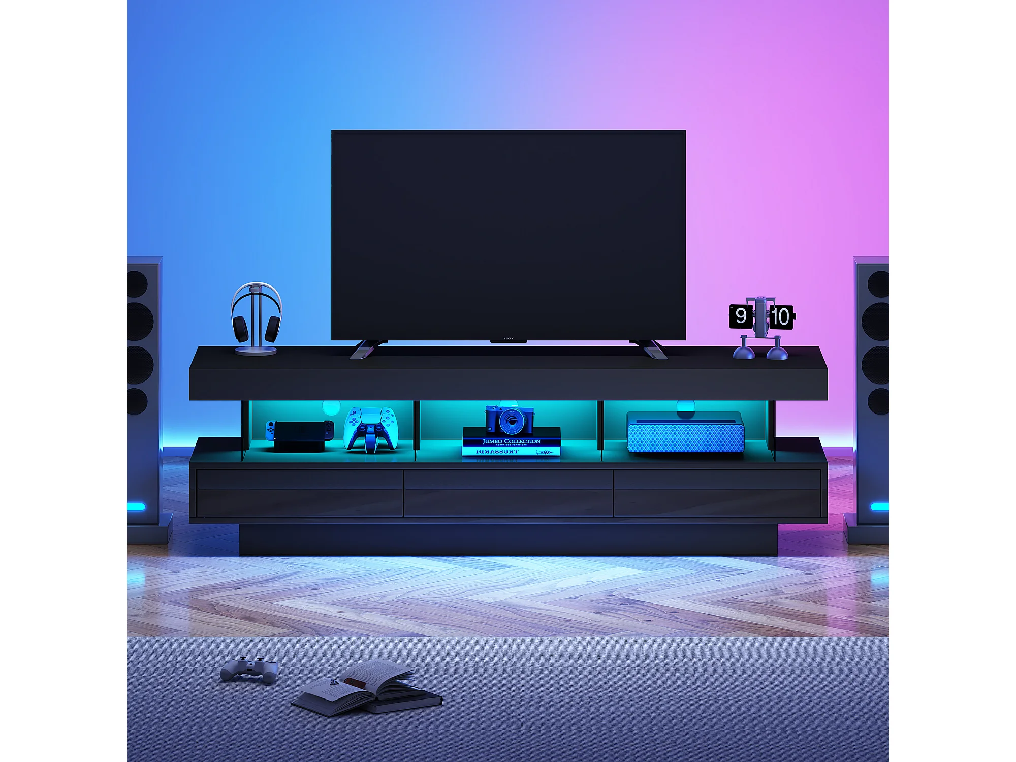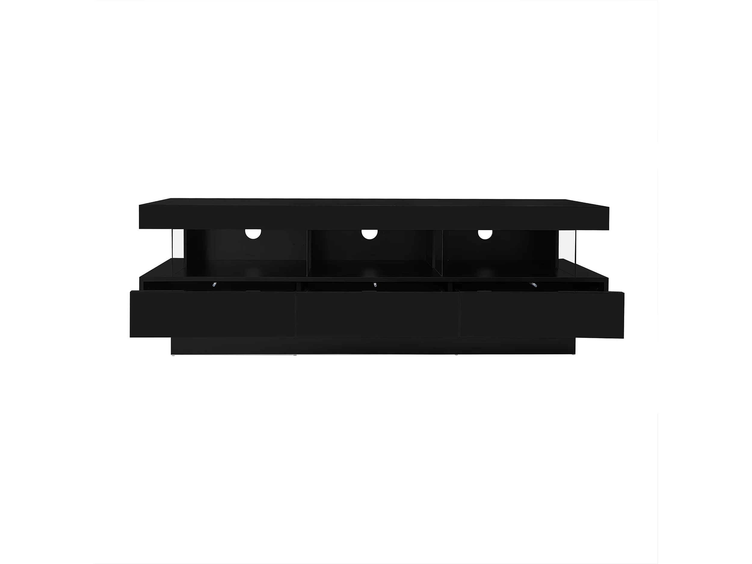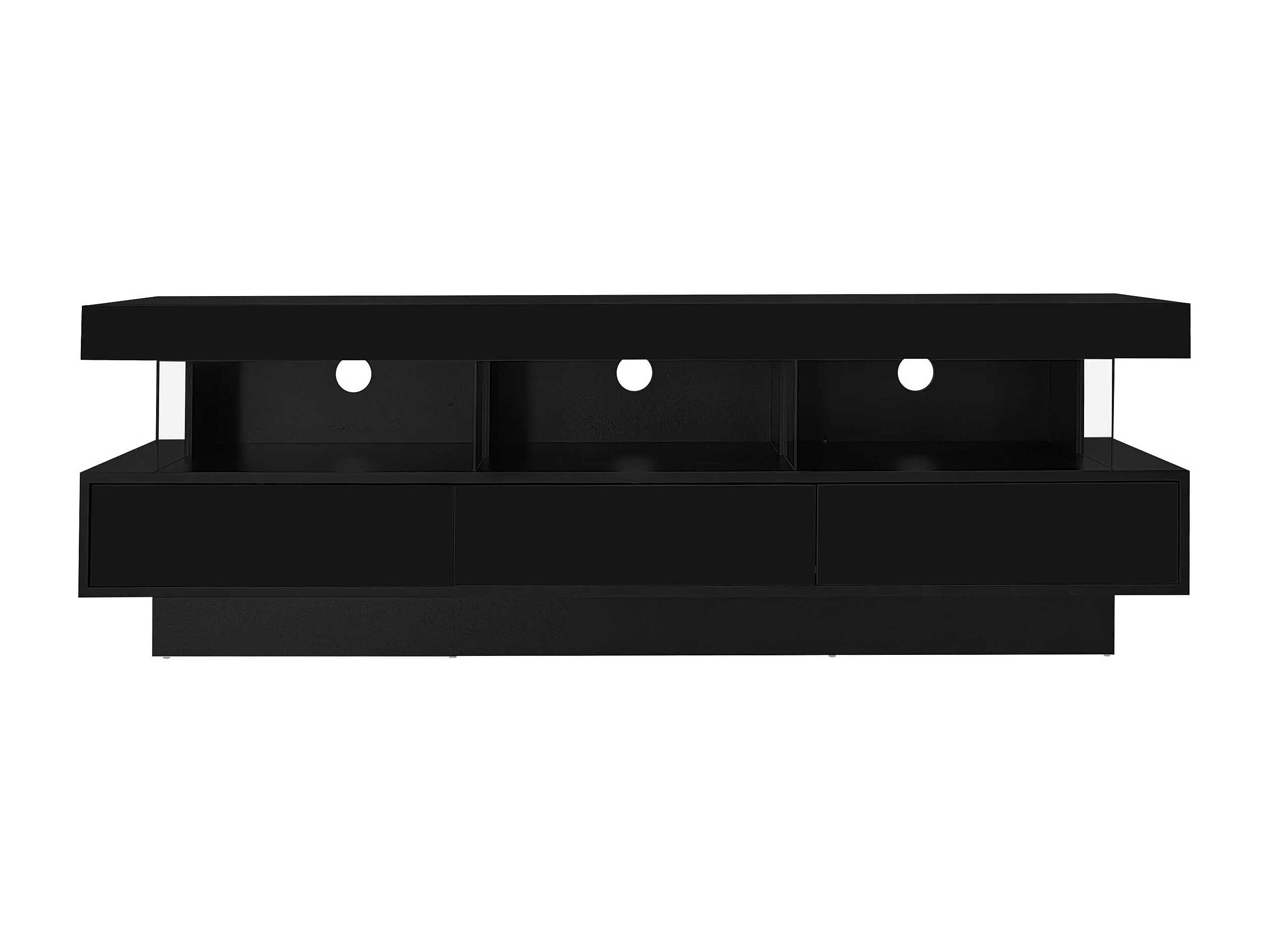 Tv-meubel met ledverlichting, 3 lades en 3 glazen planken - Glanzend zwart lakwerk