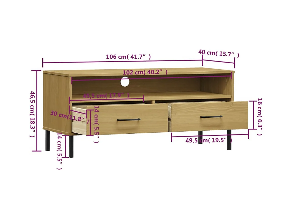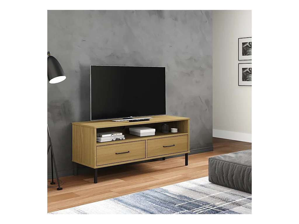 TV-meubel met metalen poten Bruin Massief grenenhout OSLO