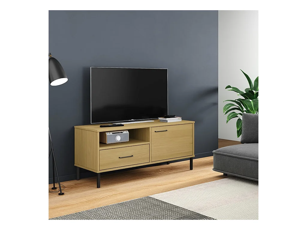 TV-meubel met metalen poten Bruin Massief grenenhout OSLO