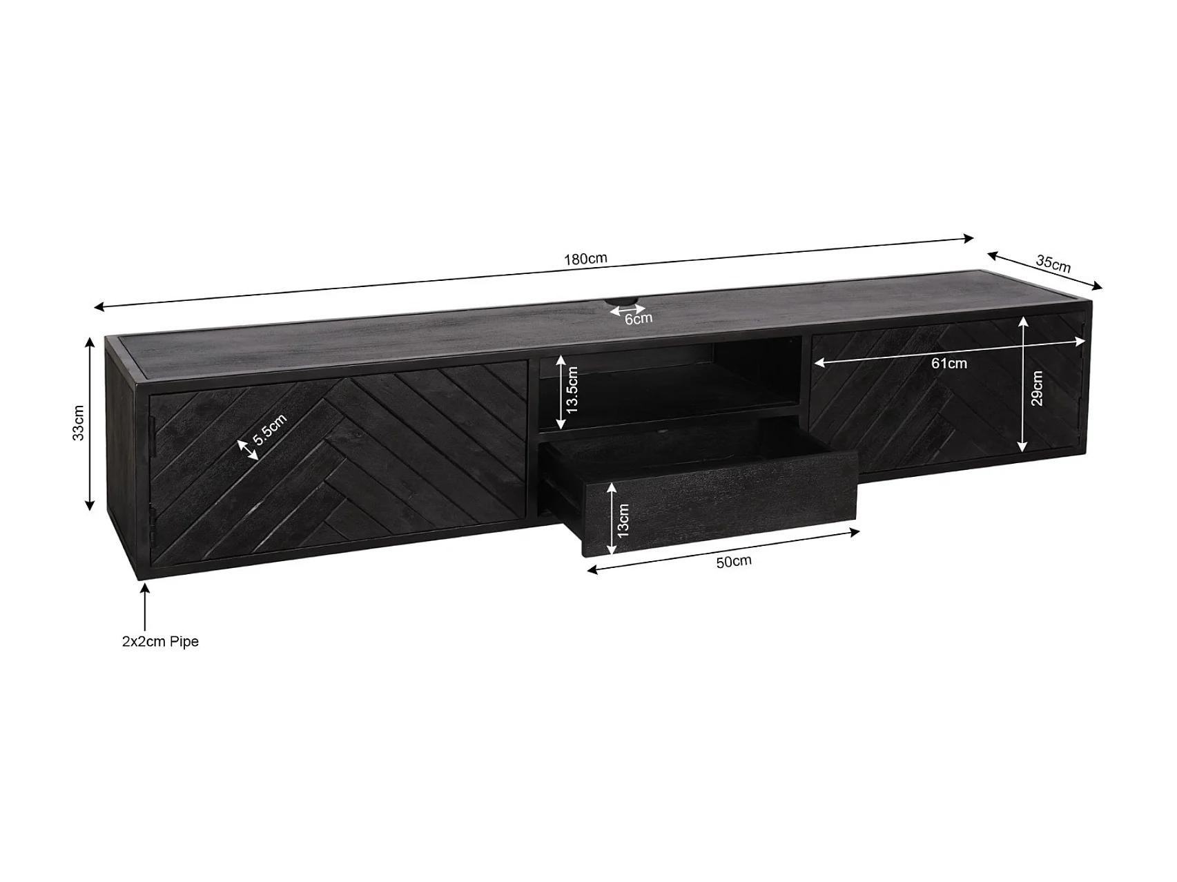 Tv meubel New York - 35x180x33cm - Zwart