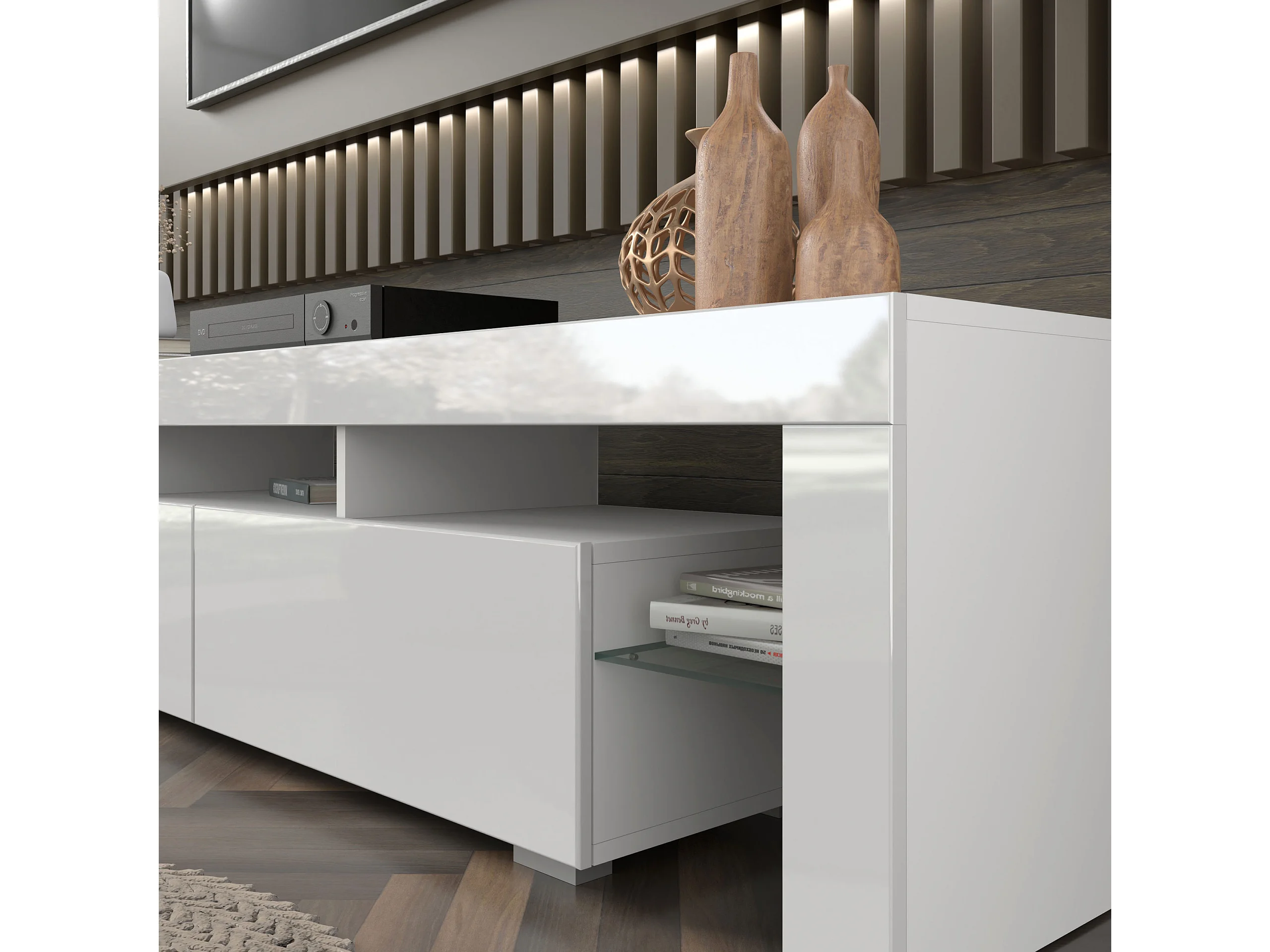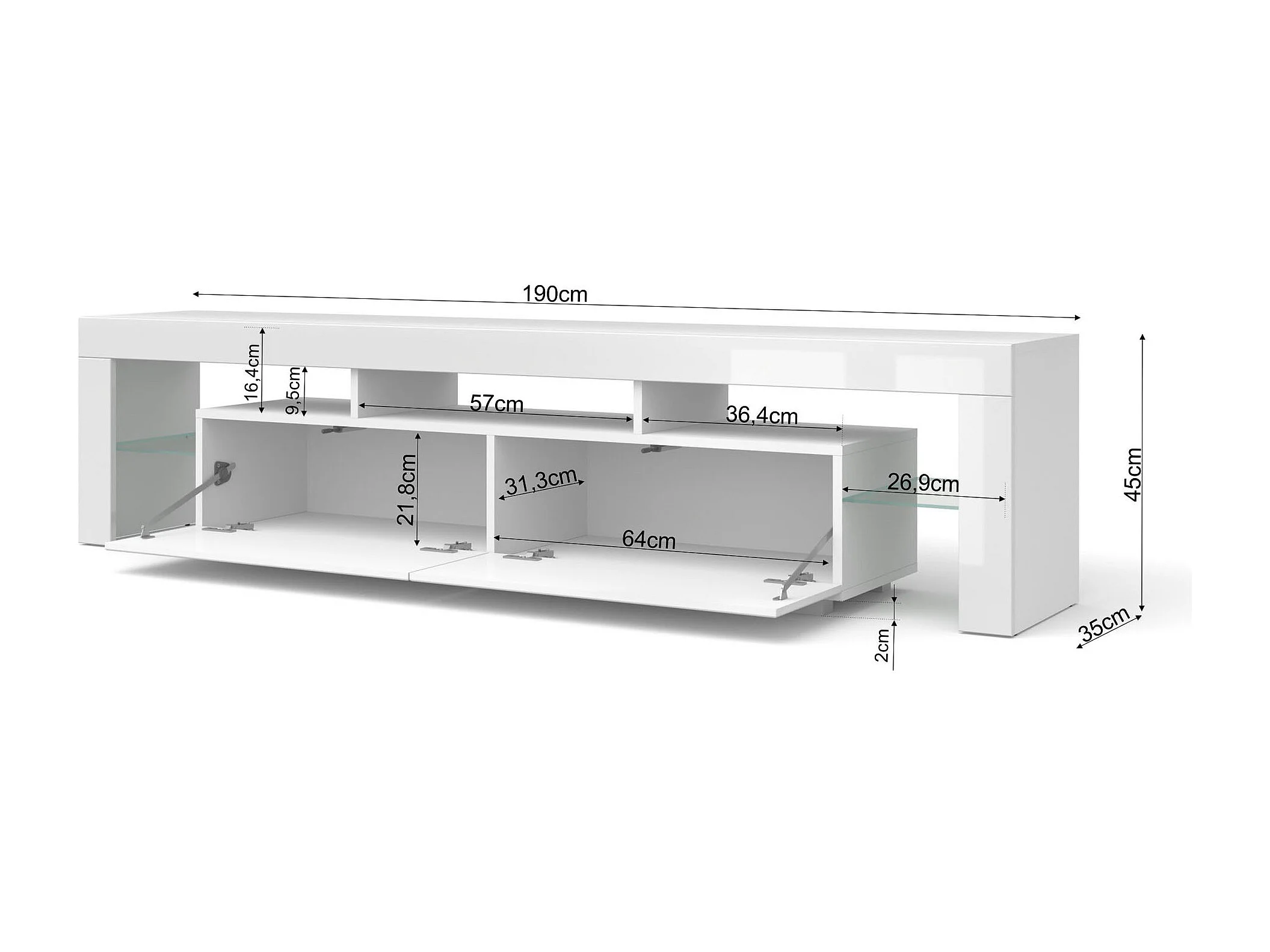 TV-meubel RAVENNA C 200 cm 2D2S glanzend wit