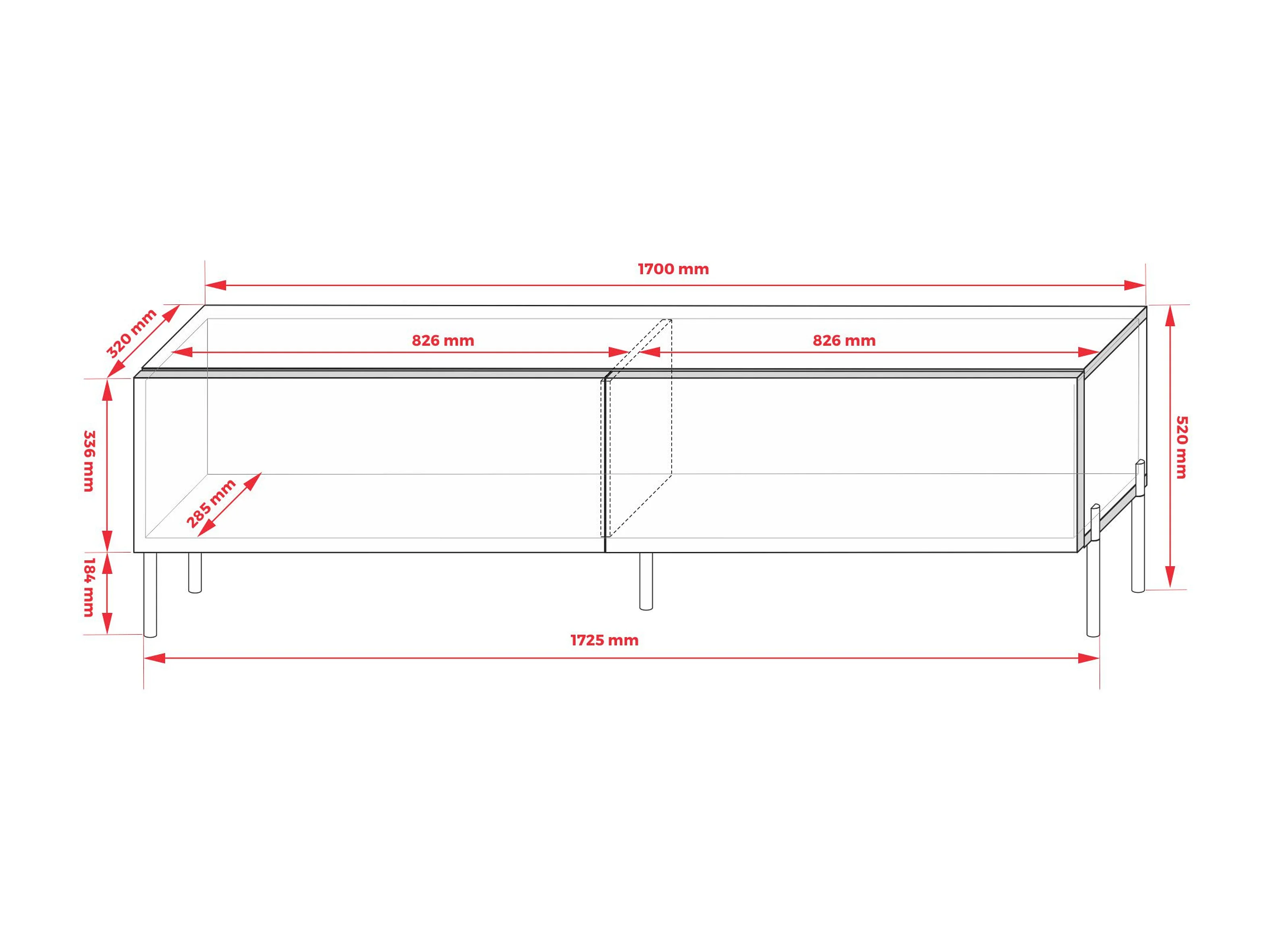 TV-meubel: Steenrood, 170 x 52 x 32 cm, gouden poten