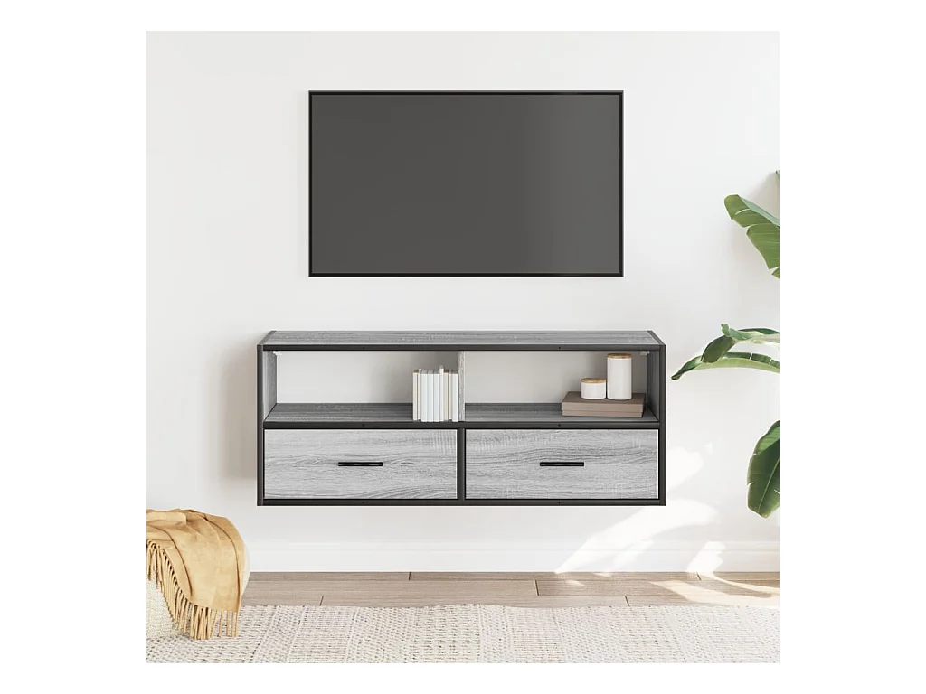 Tv-meubel | Tv-Bank | TV-kast100x31x39,5 cm bewerkt hout metaal grijs sonoma eiken