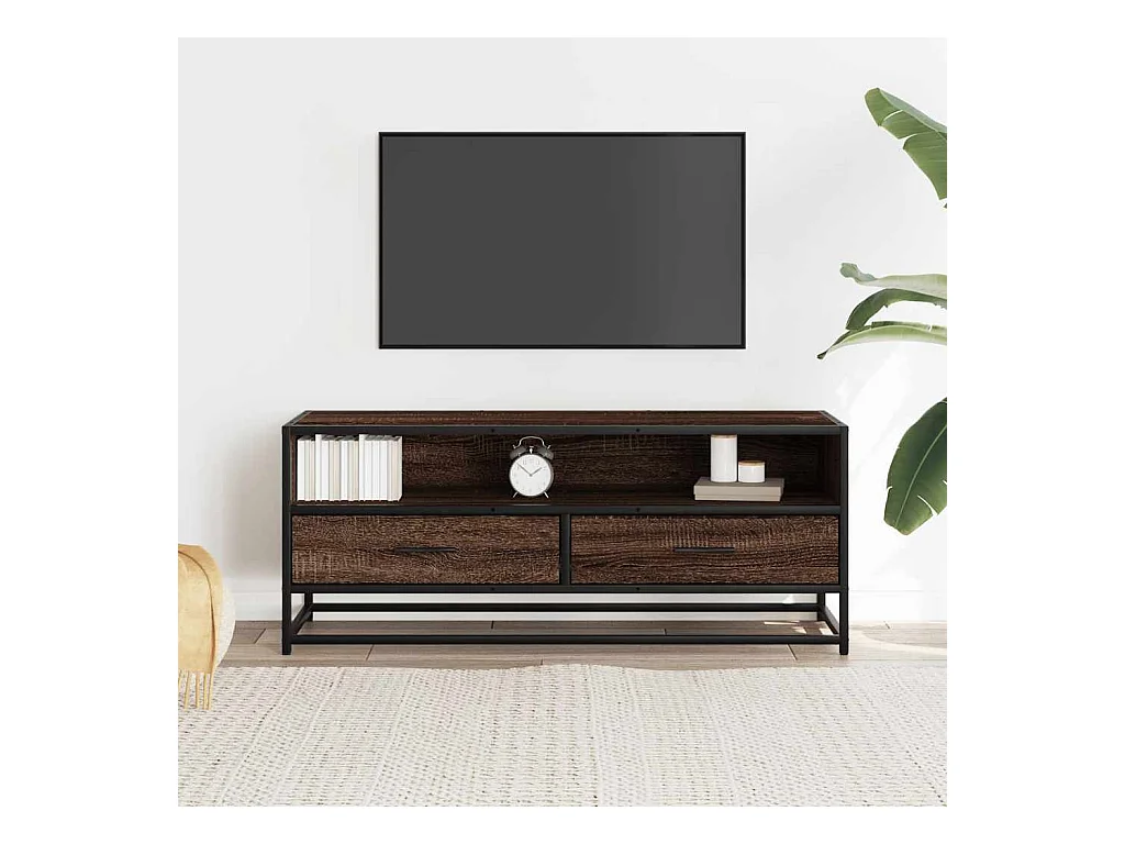 Tv-meubel | Tv-Bank | TV-kast100x34,5x40 cm bewerkt hout metaal bruin eikenkleur