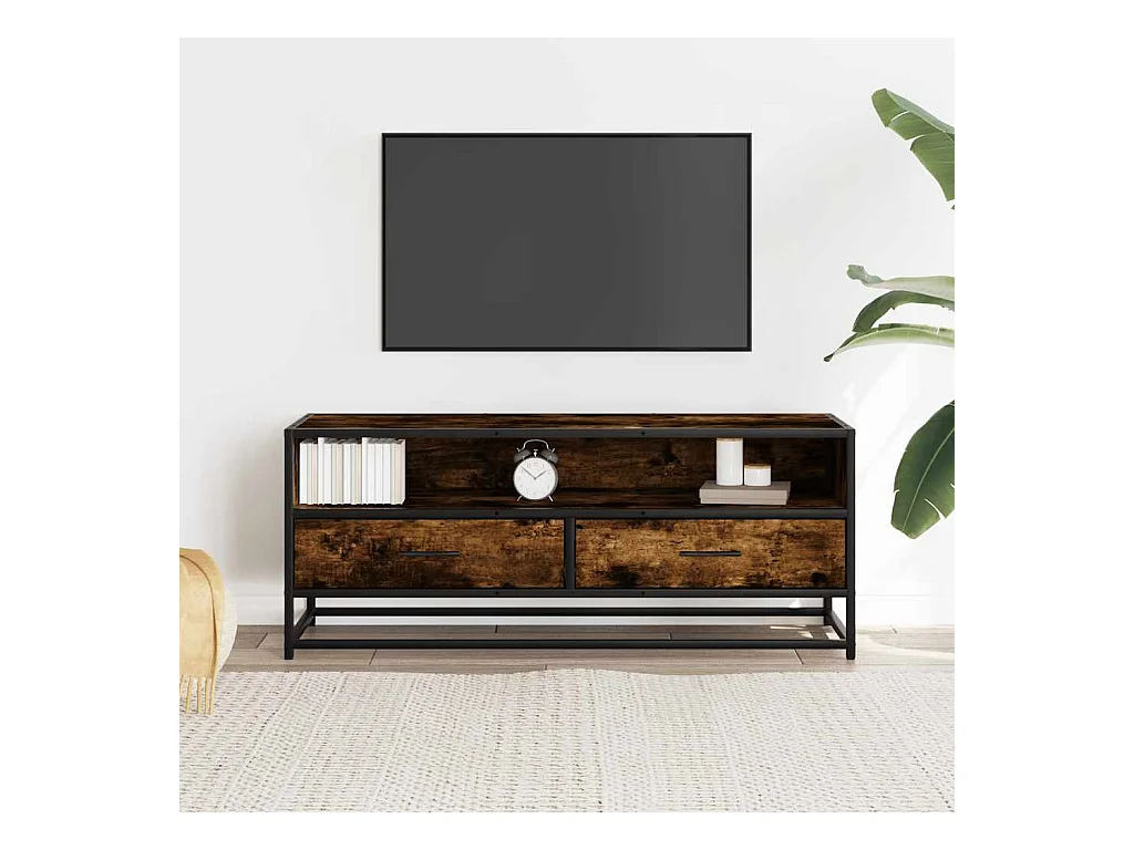 Tv-meubel | Tv-Bank | TV-kast100x34,5x40 cm bewerkt hout metaal gerookt eikenkleur