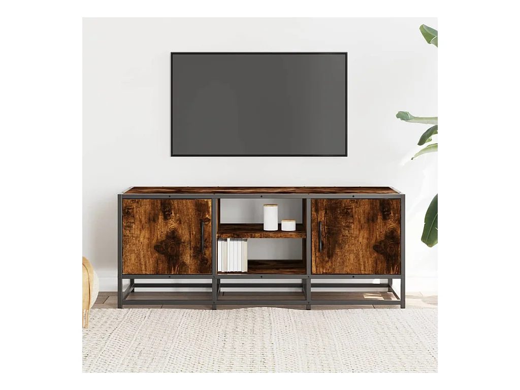 Tv-meubel | Tv-Bank | TV-kast100x35x41 cm bewerkt hout metaal gerookt eikenkleurig