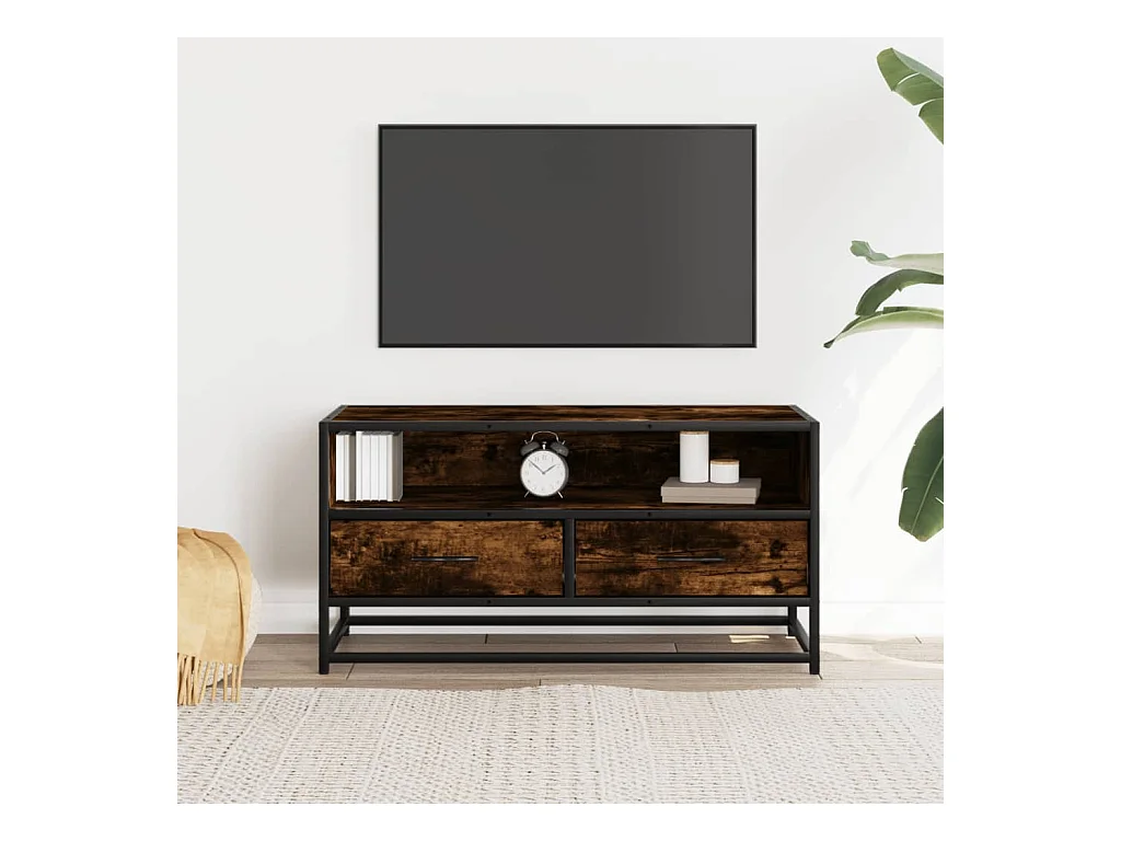 Tv-meubel | Tv-Bank | TV-kast80x34,5x40cm bewerkt hout metaal gerookt eikenkleurig