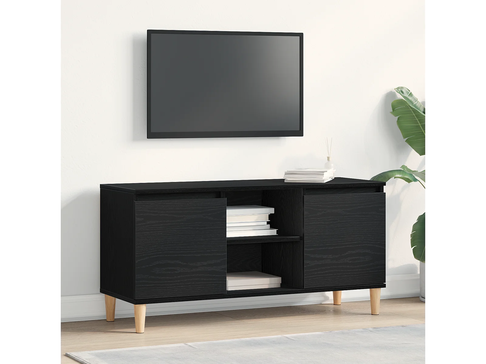Tv-meubel | Tv-Bank | TV-kastmet houten poot 102x35x50 cm zwart eikenkleurig
