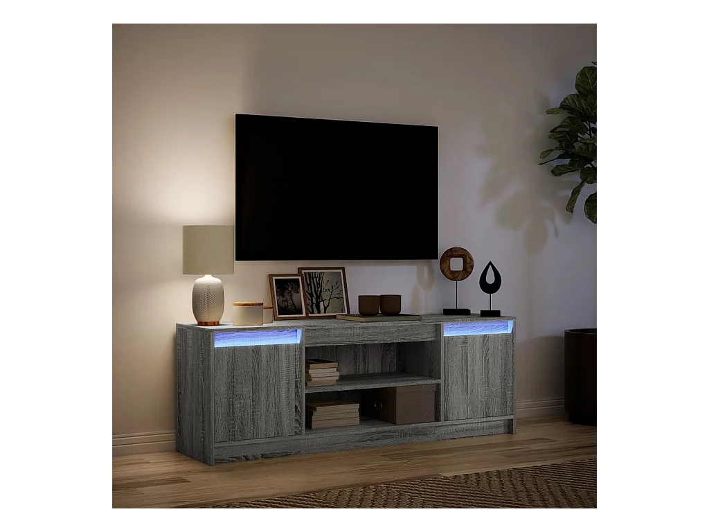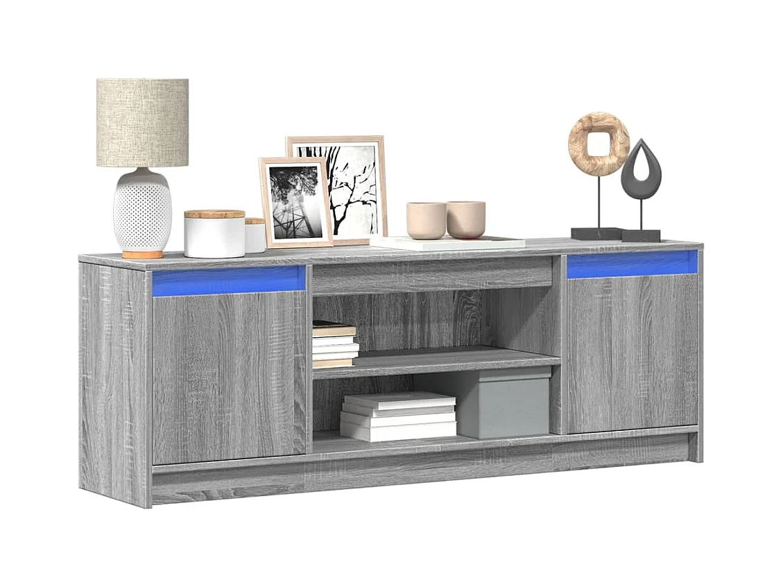 Tv-meubel | Tv-Bank | TV-kastmet LED 139,5x34x50 cm bewerkt hout grijs sonoma
