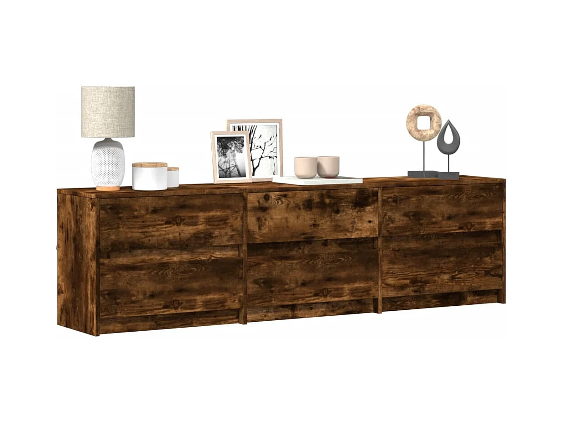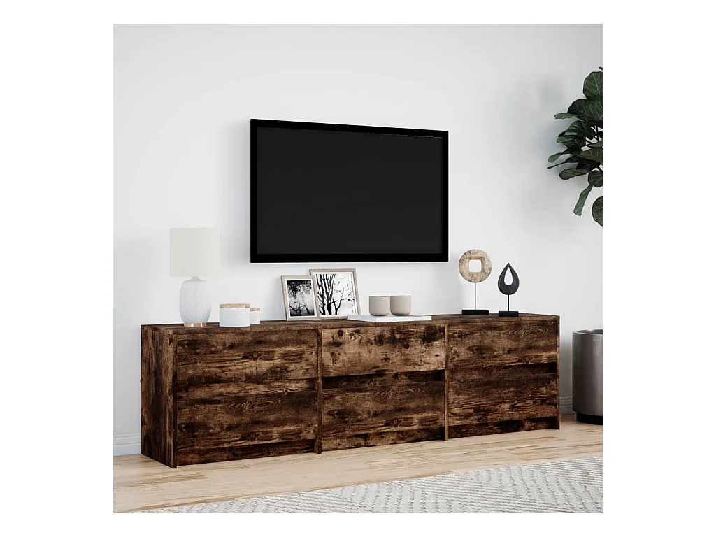 Tv-meubel | Tv-Bank | TV-kastmet LED 180x34x50 cm bewerkt hout gerookt eikenkleur