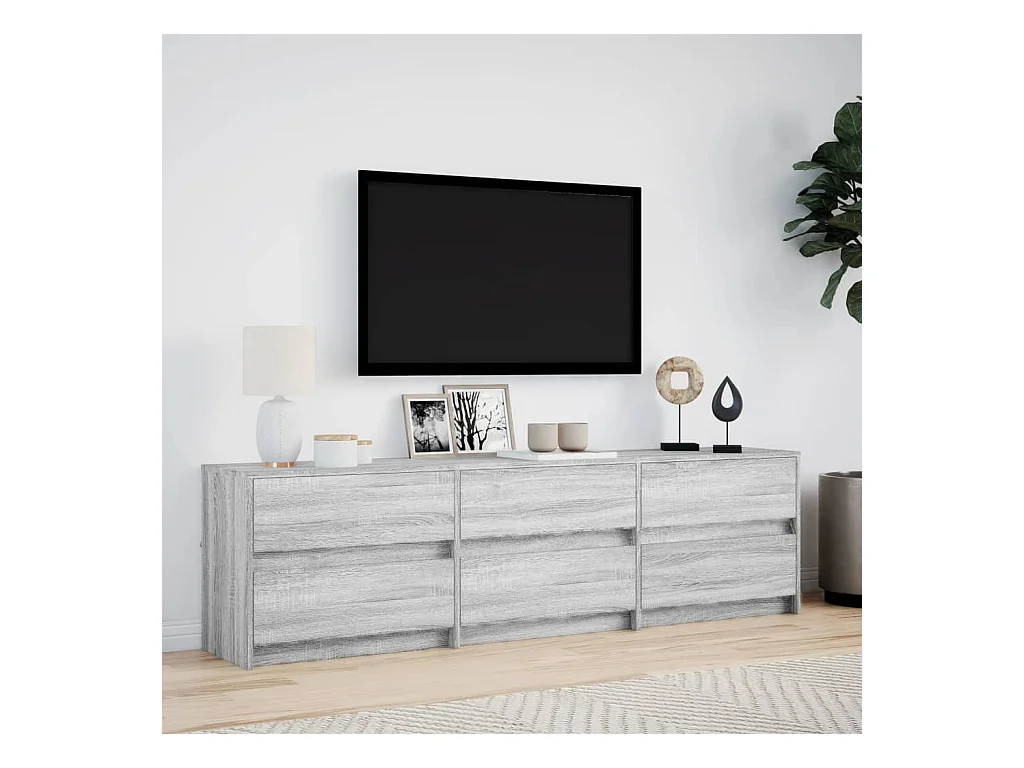 Tv-meubel | Tv-Bank | TV-kastmet LED 180x34x50 cm bewerkt hout grijs sonoma eiken