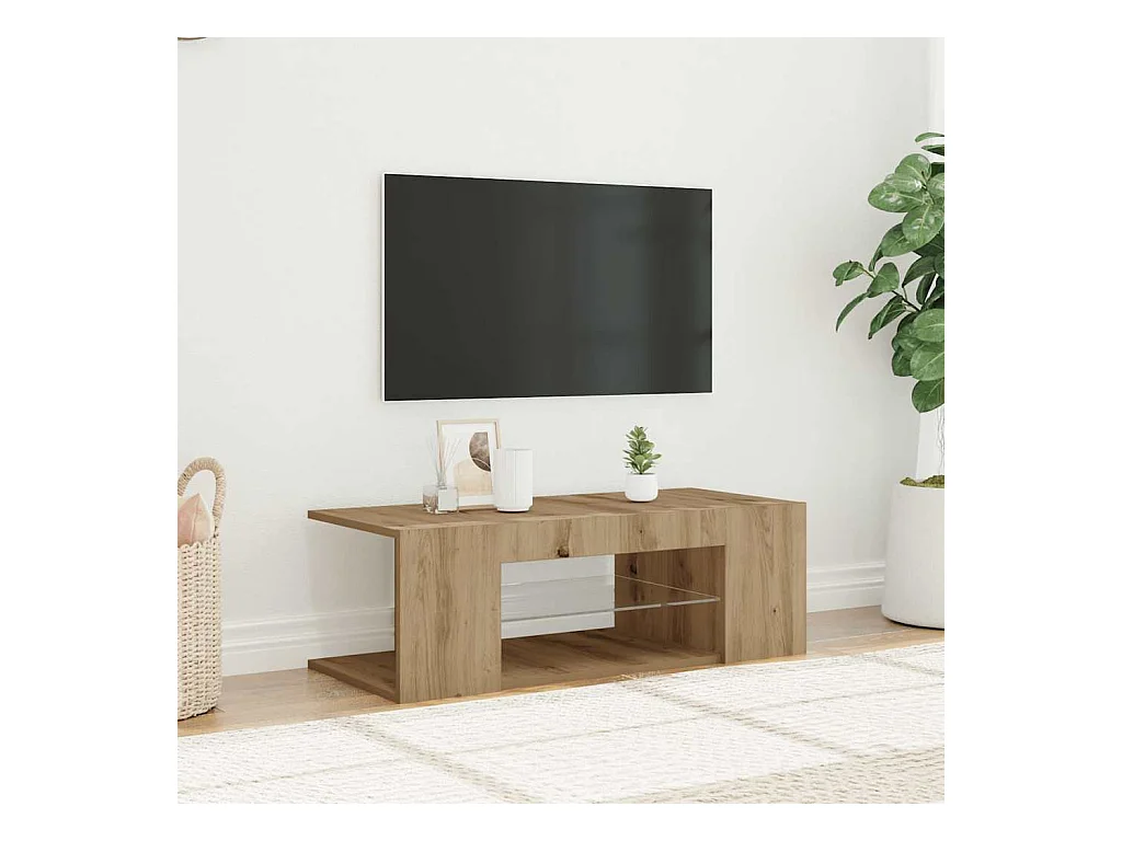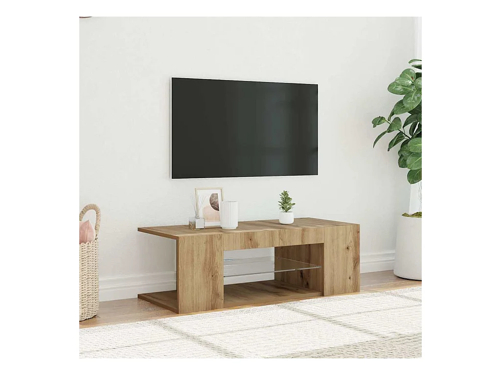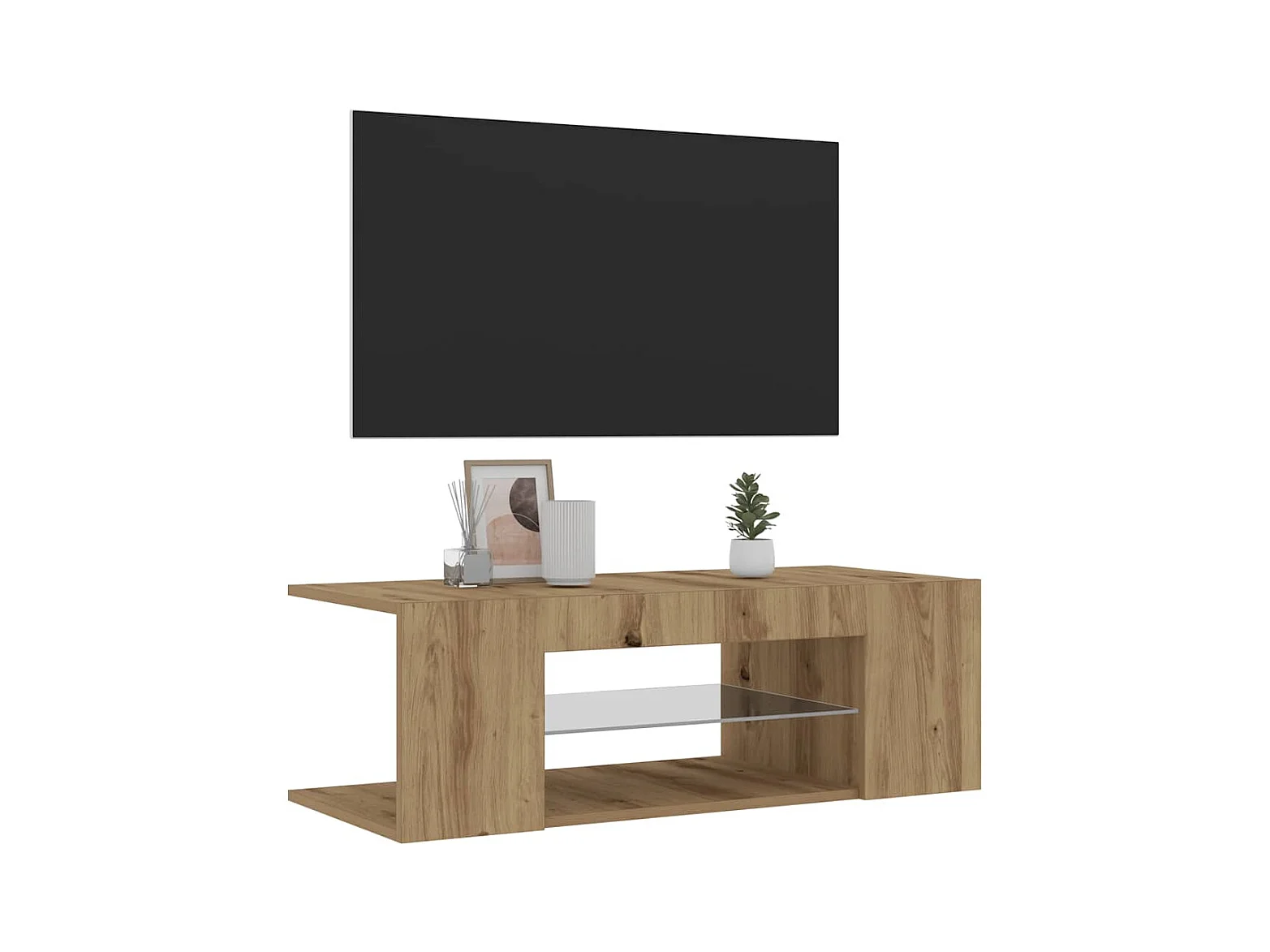 Tv-meubel | Tv-Bank | TV-kastmet LED 90x39x30 cm bewerkt hout artisanaal eiken