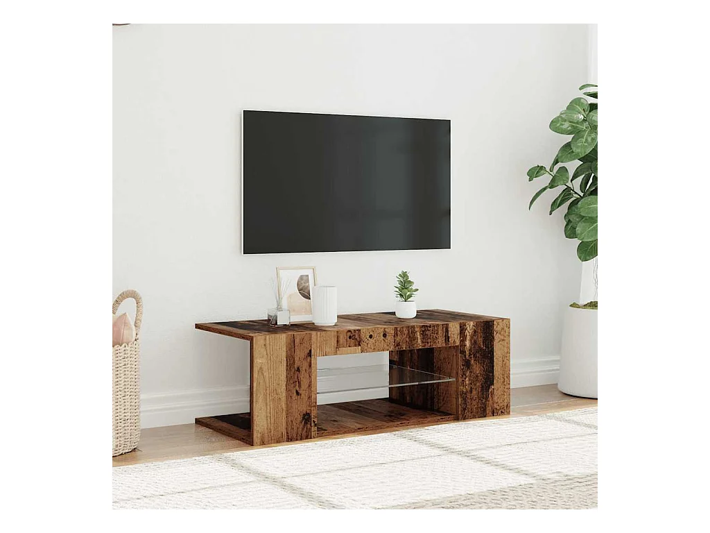 Tv-meubel | Tv-Bank | TV-kastmet LED 90x39x30 cm bewerkt hout oud hout