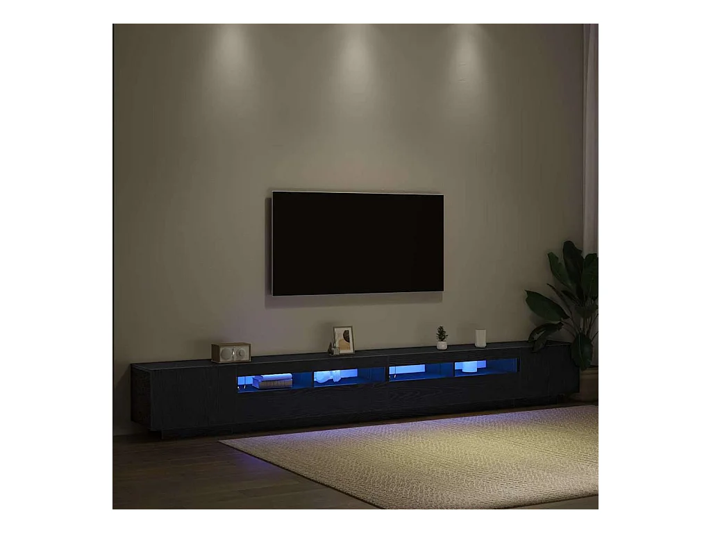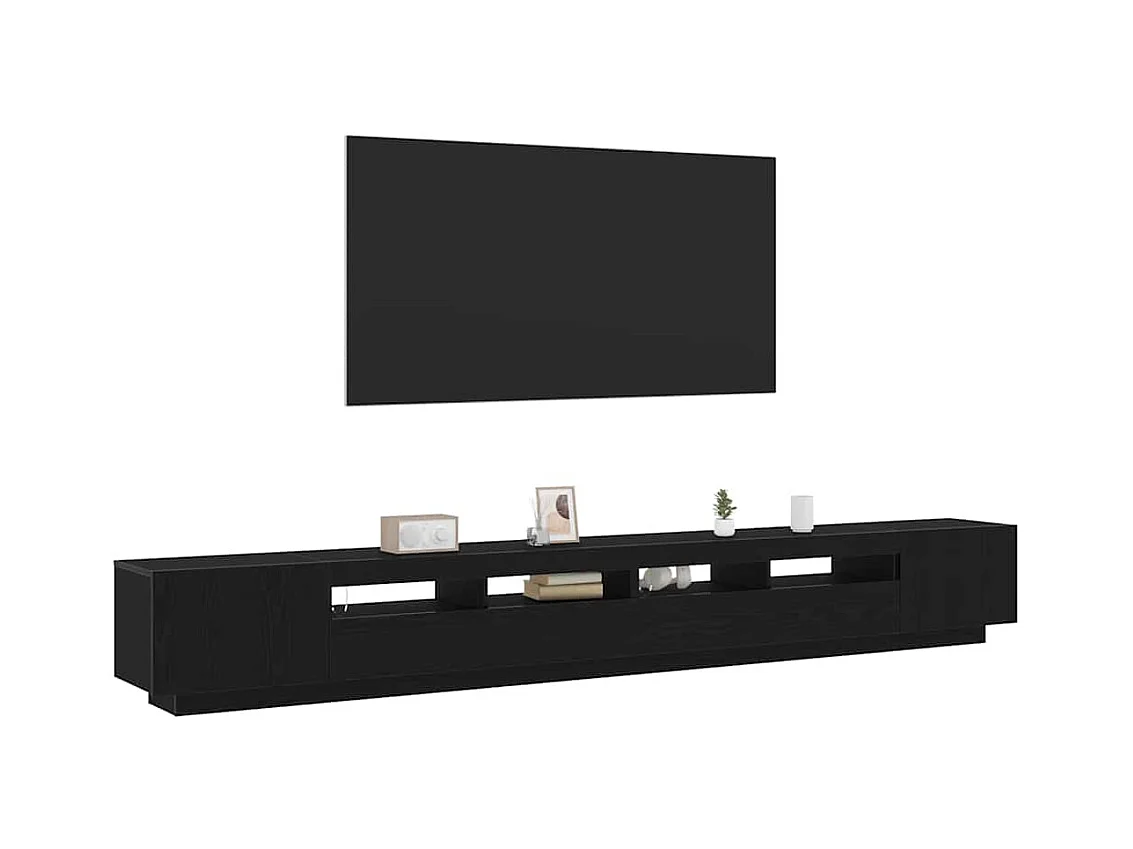 Tv-meubel | Tv-Bank | TV-kastmet LED-verlichting Zwart Eiken 300x35x40 cm Geengineerd Hout