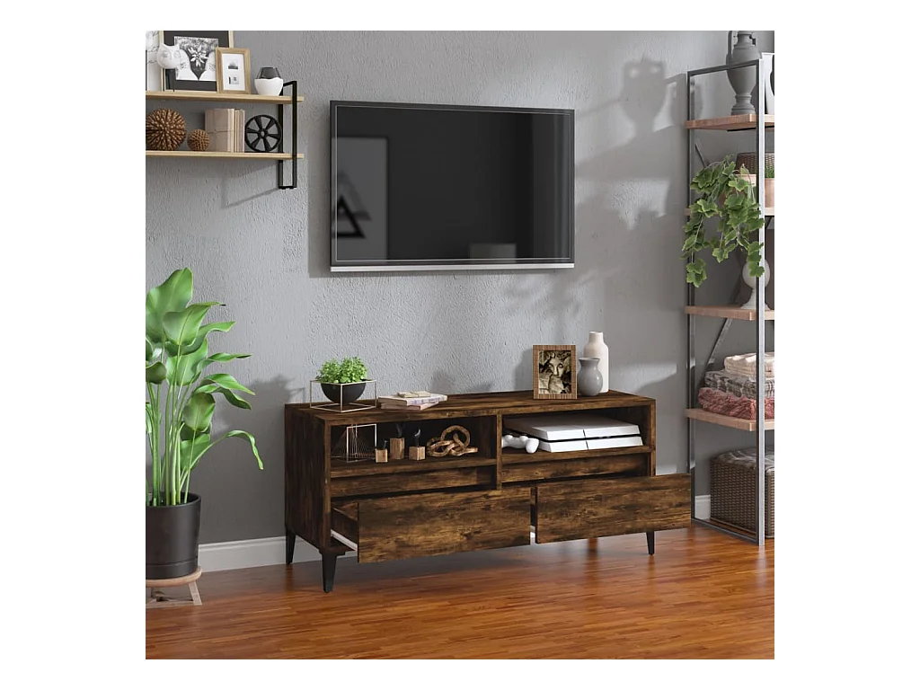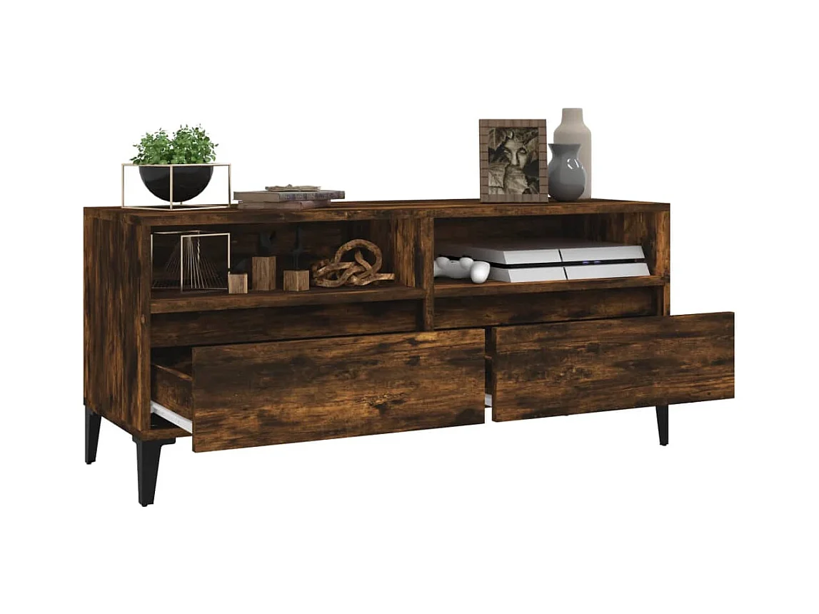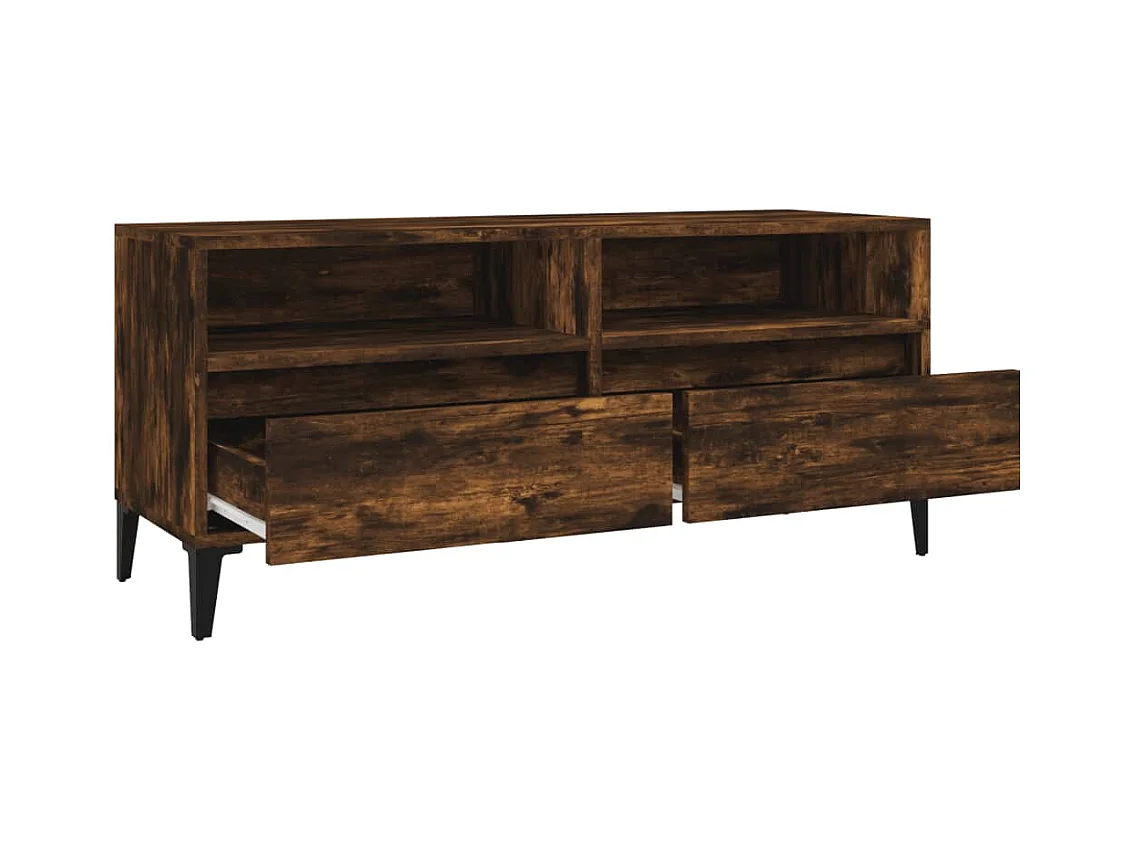 TV-meubel van gerookt eikenhout 100x34,5x40 cm, bewerkt hout en metaal