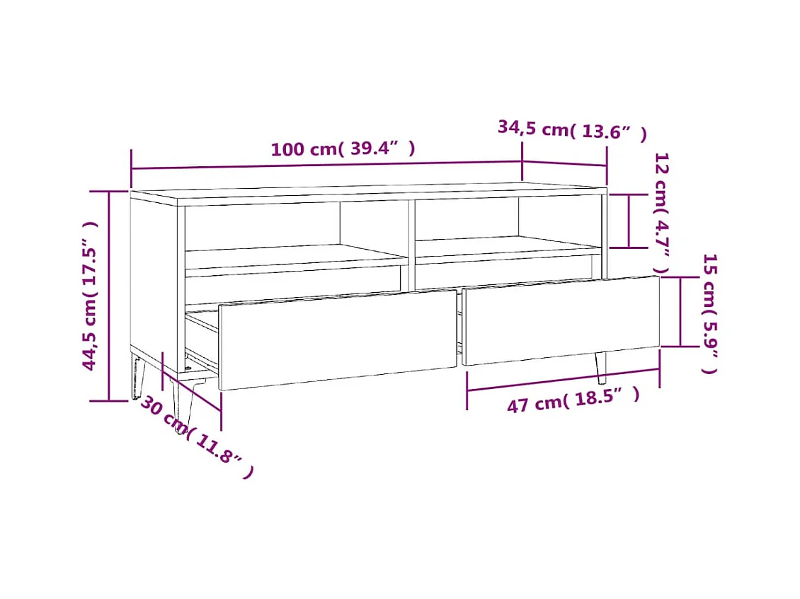 Sonoma eiken tv-kast 100x34,5x44,5 cm bewerkt hout