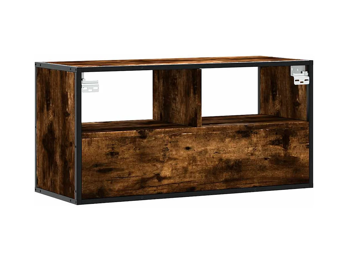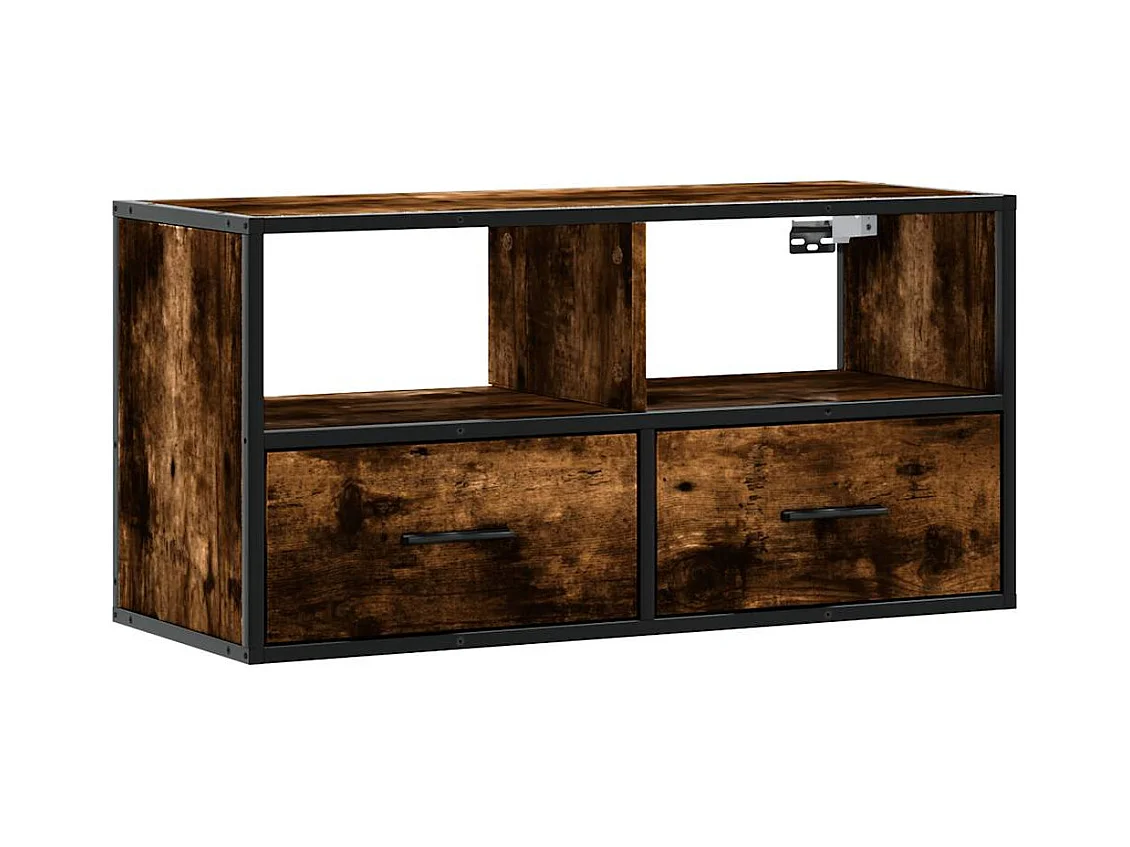 TV-meubel van gerookt eikenhout 80x31x39,5 cm, bewerkt hout en metaal