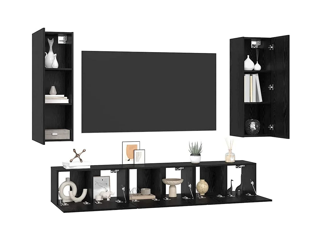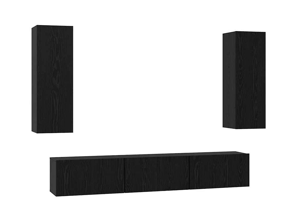 Tv-meubelset | Tv-Bank | TV-kast met plank Wandgemonteerd Anders met opslag met de deur 5 pcs Zwart eiken Bewerkt hout