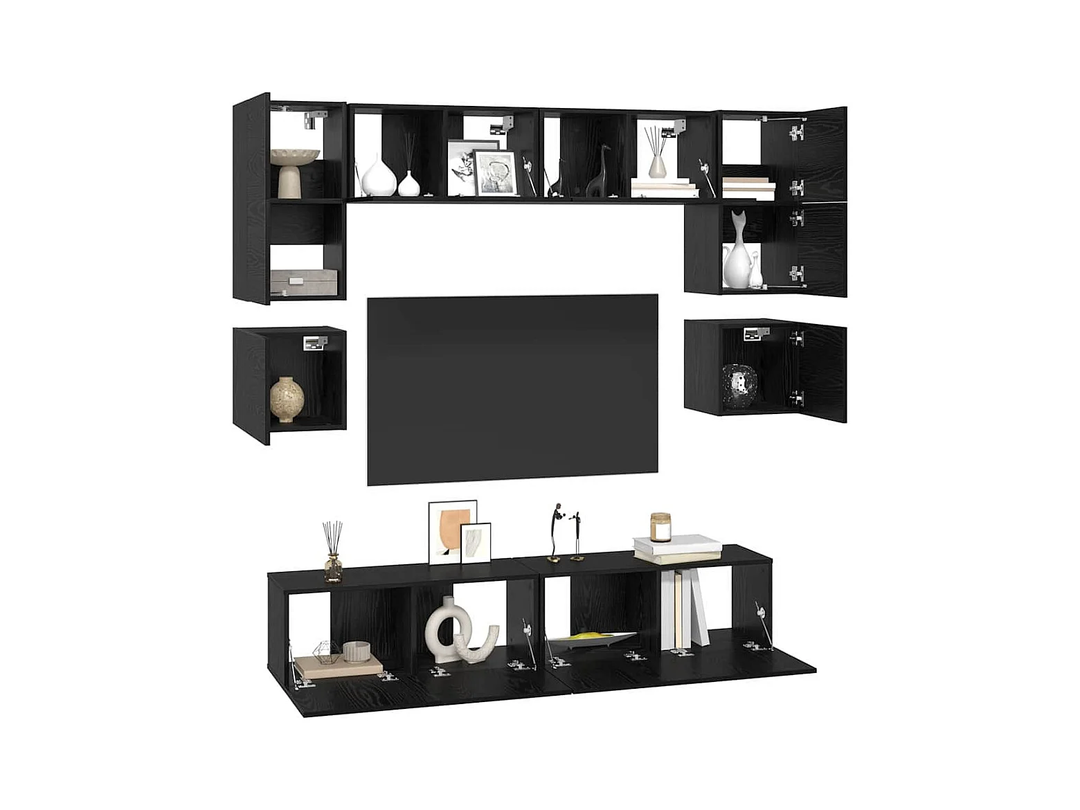 Tv-meubelset | Tv-Bank | TV-kast 8 pcs Zwart eiken 80 x 30 x 30 cm Bewerkt hout