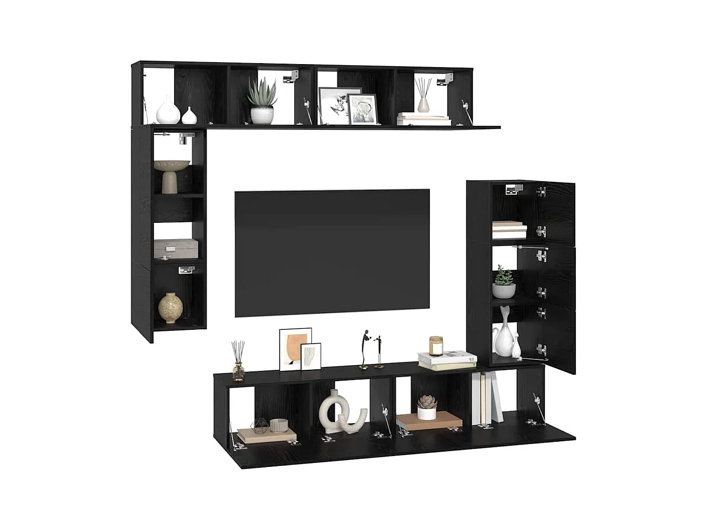 Tv-meubelset | Tv-Bank | TV-kast met plank Anders met opslag met de deur 7 pcs Zwart eiken Bewerkt hout