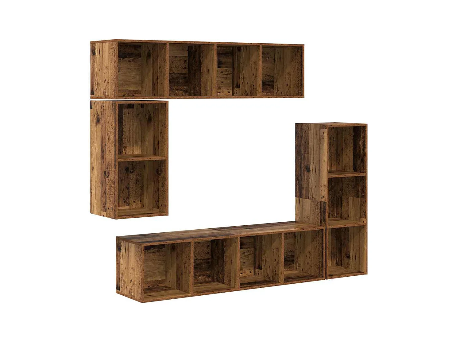Tv-meubelset | Tv-Bank | TV-kast met opslag 4 pcs Oud hout Bewerkt hout