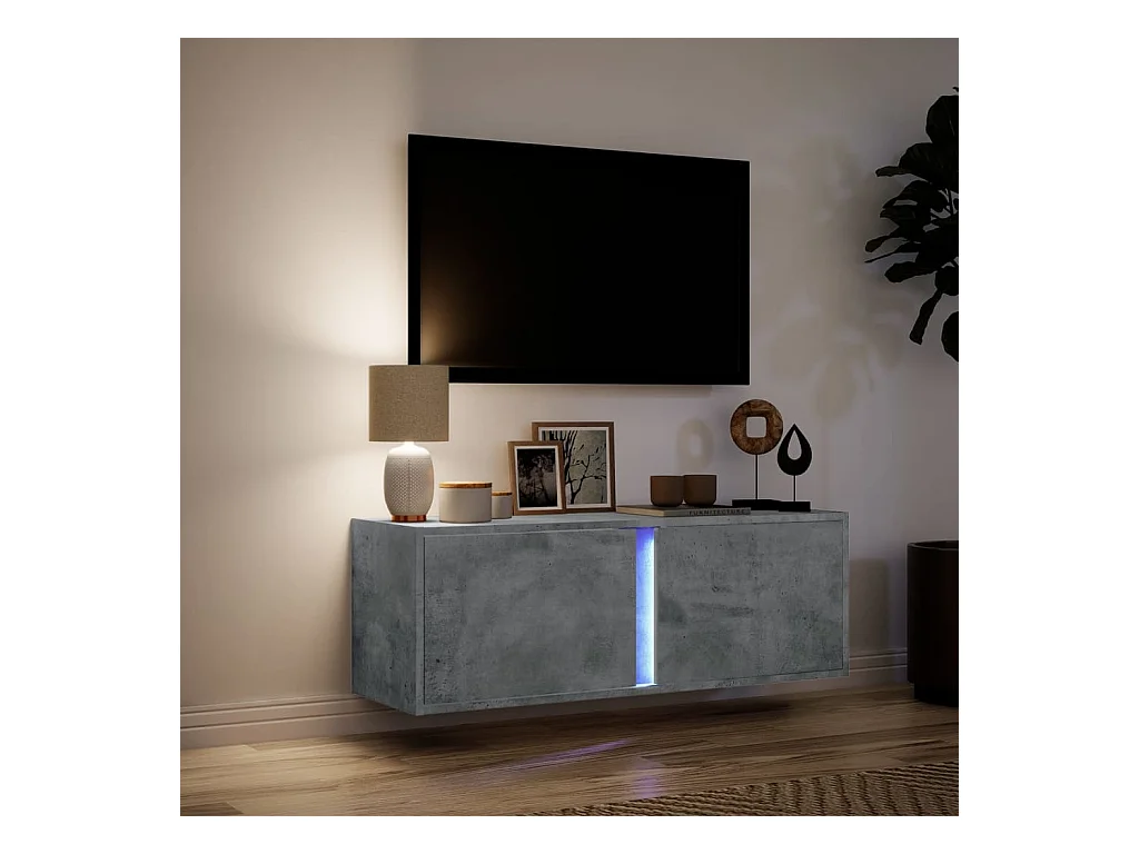 TV-wandmeubel met ledverlichting, betongrijs, 100x31x35 cm