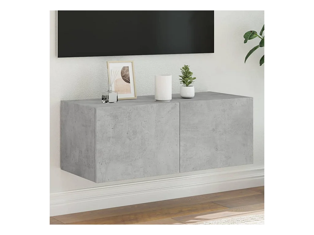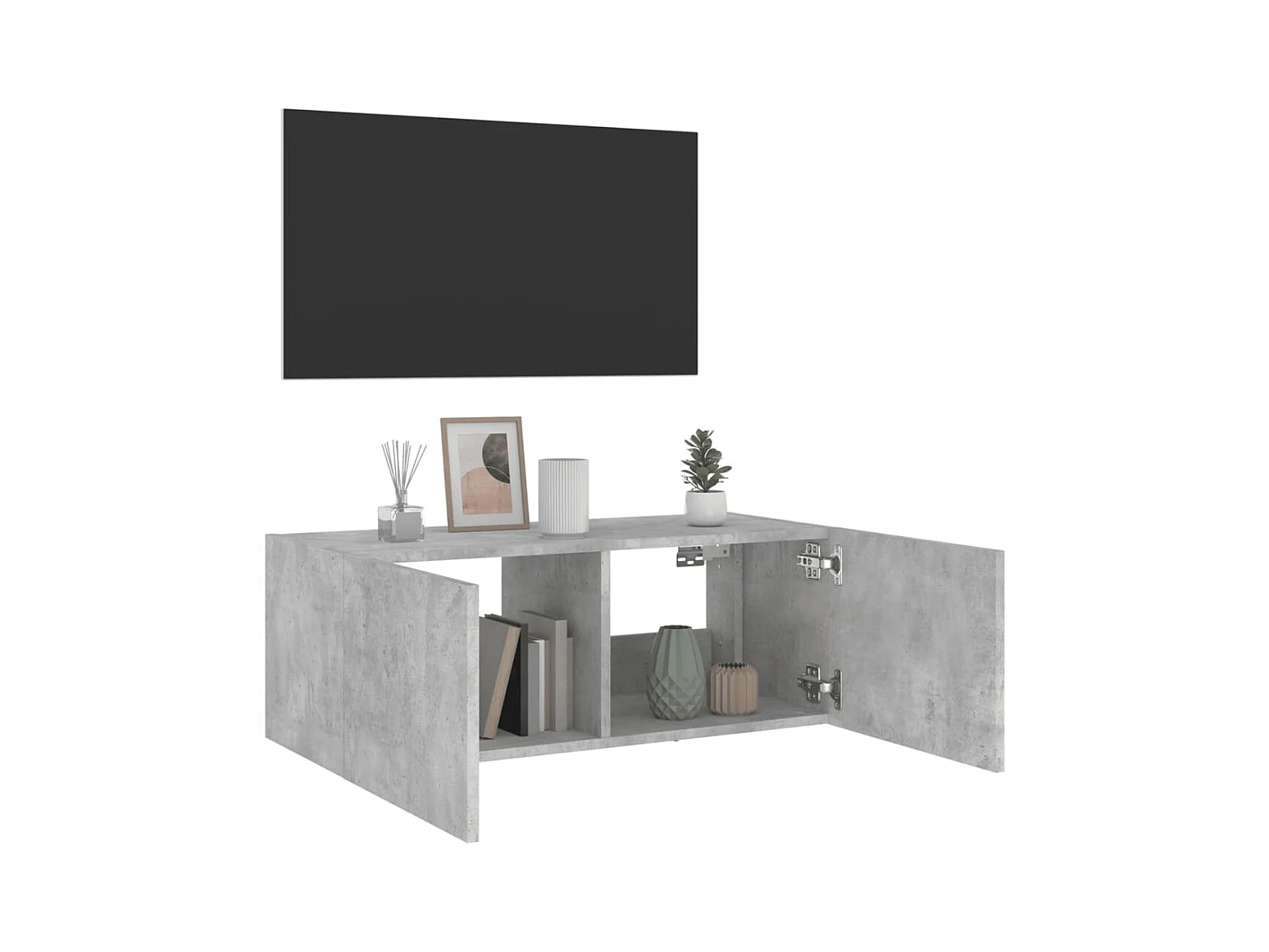 TV-wandmeubel met ledverlichting, betongrijs, 80x35x31 cm