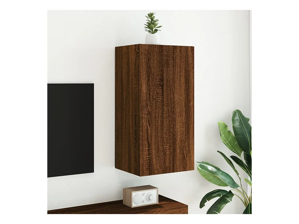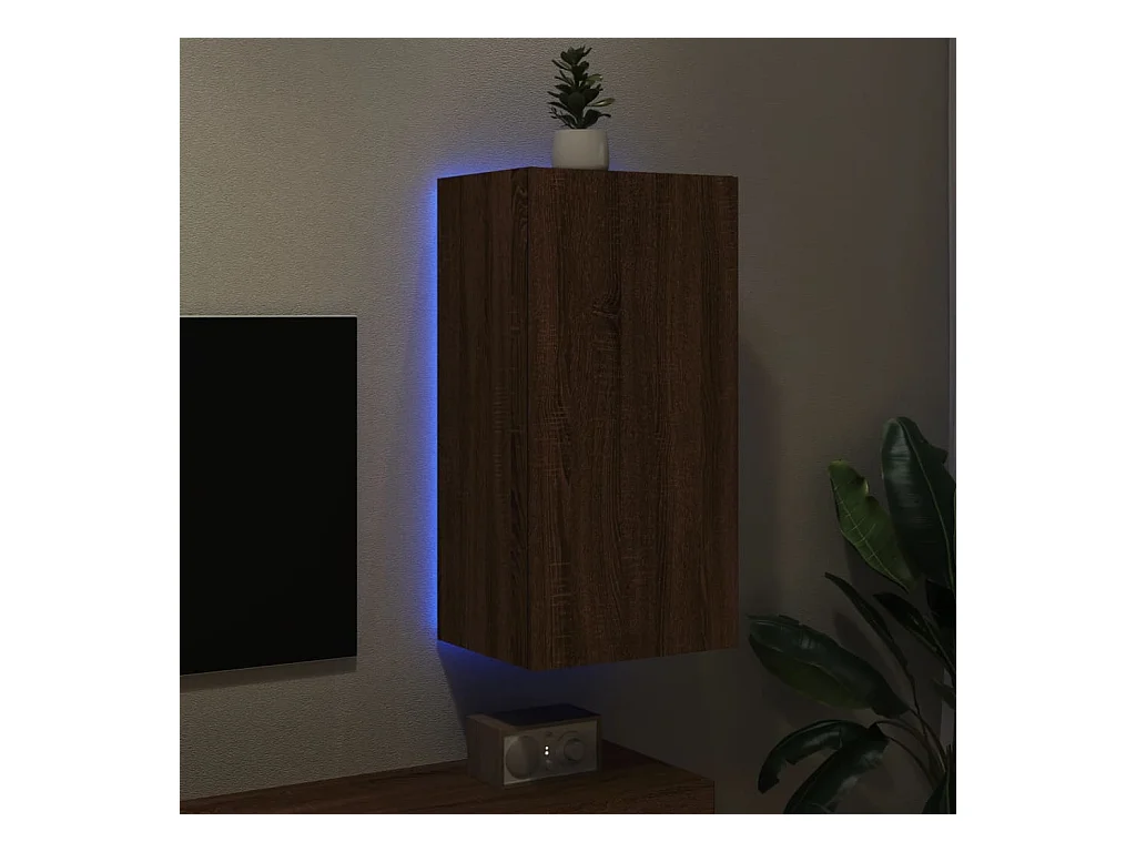 TV-wandmeubel met ledverlichting, bruin eiken, 40,5x35x80 cm