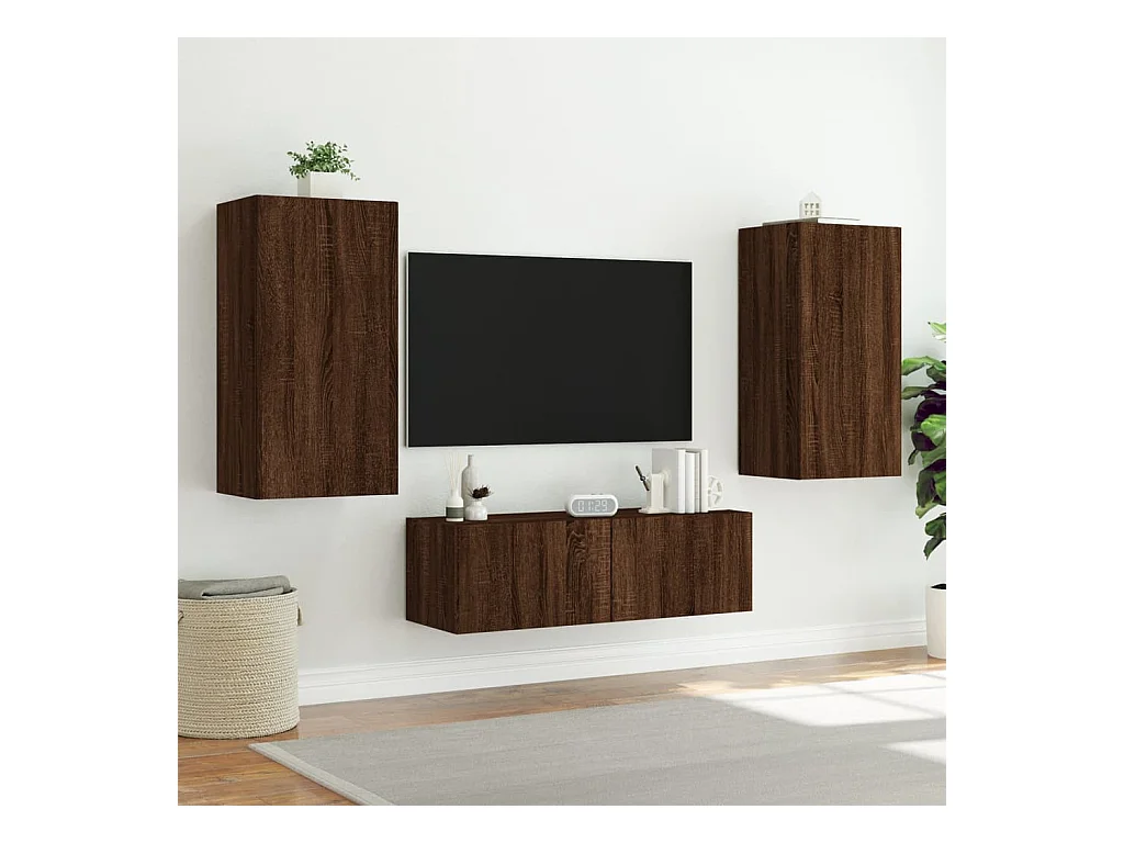 TV-wandmeubels met LED 5 stuks gerookt eikenhout