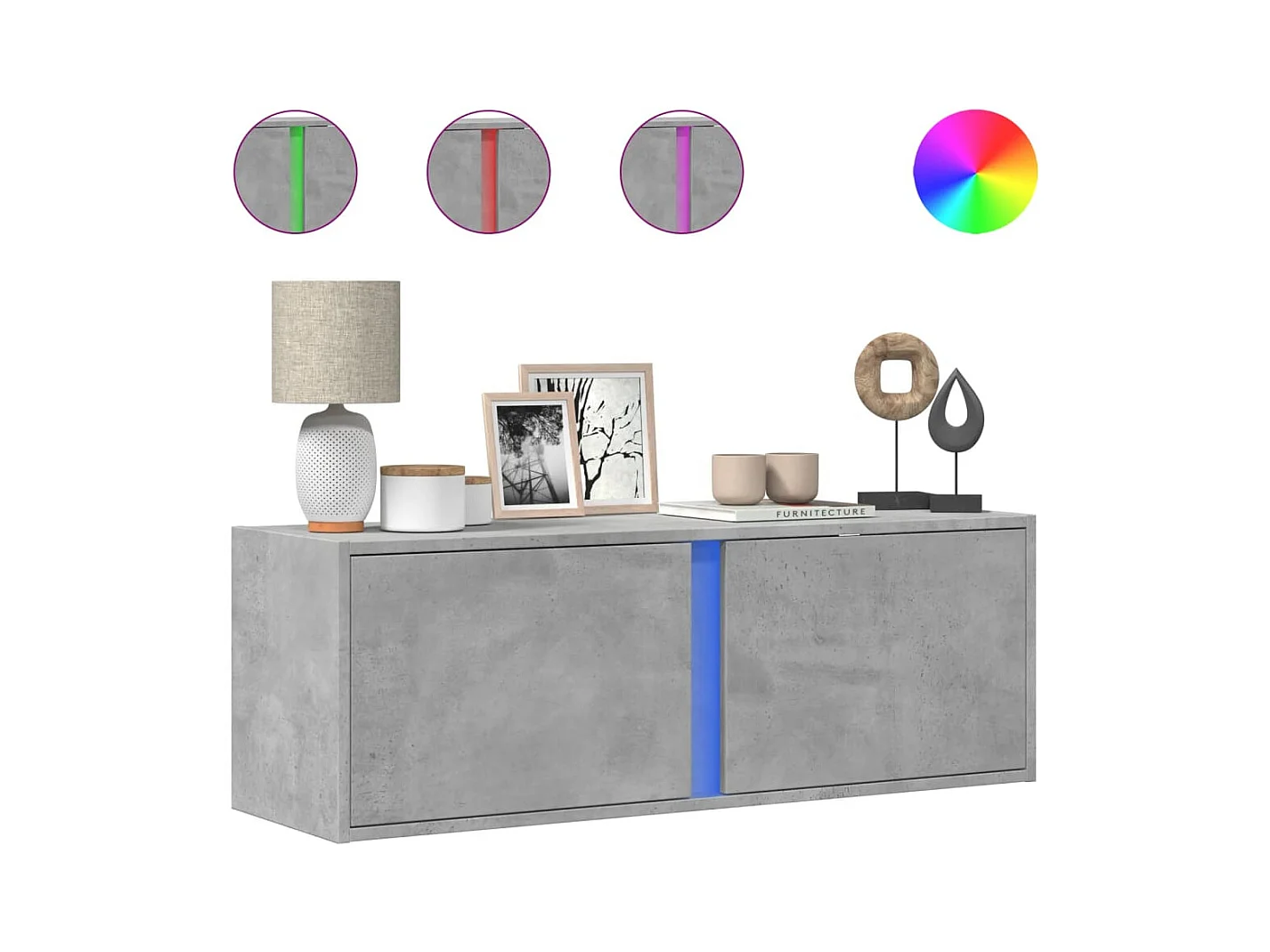 Tv-wandmeubel | TV-kast | Tv-Bank met LED-verlichting 100x31x35 cm betongrijs