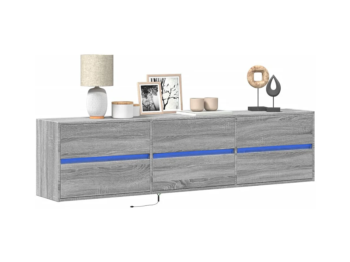 Tv-wandmeubel | TV-kast | Tv-Bank met LED-verlichting 180x31x45 cm grijs sonoma