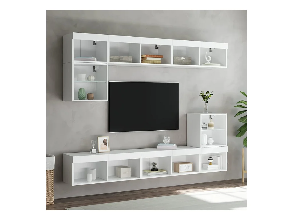 TV-wandmeubels met LED 8 stuks wit bewerkt hout