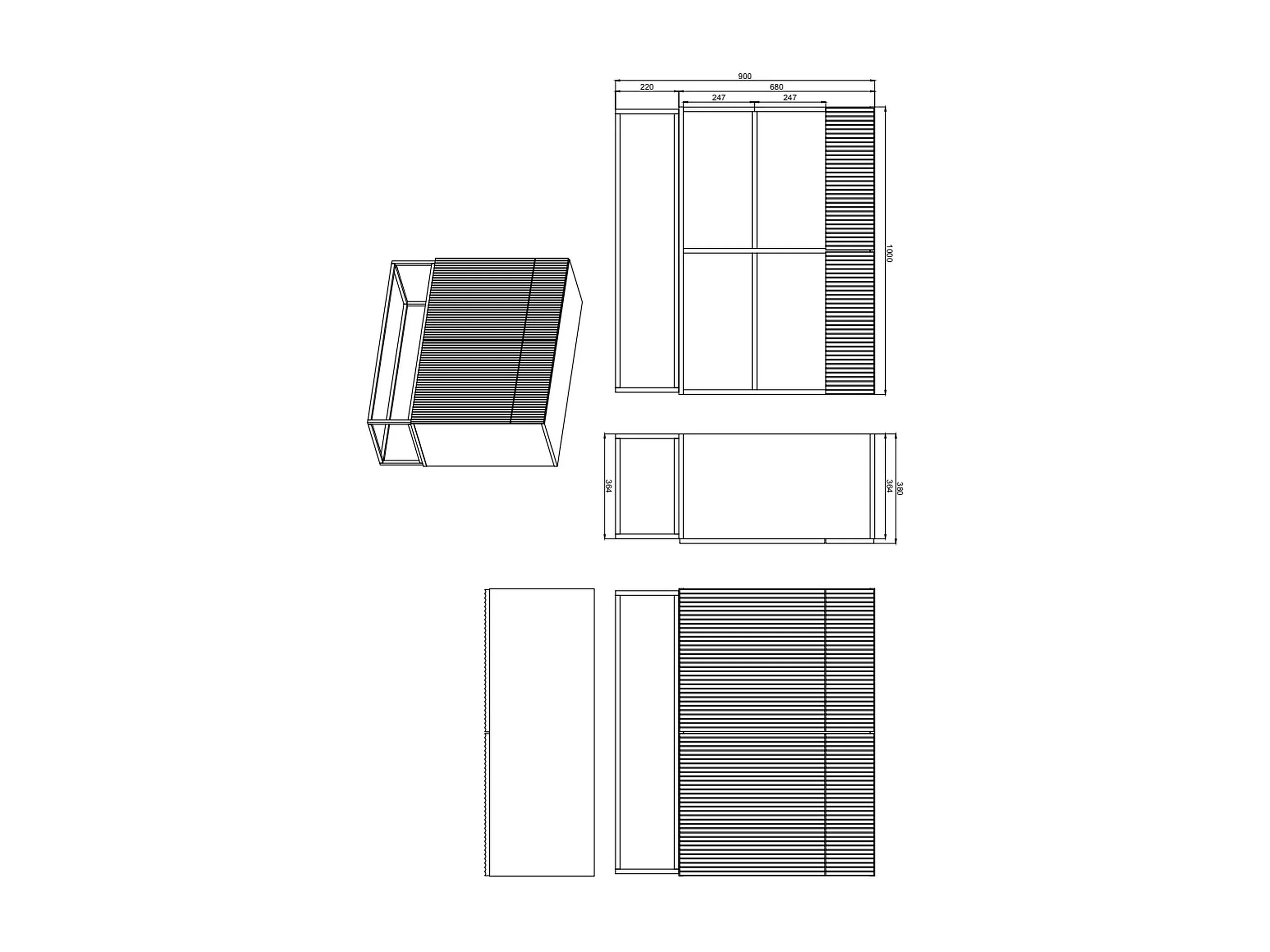 Tweedeurs ladekast - 100 cm - met twee lades - zwart - VELDIO