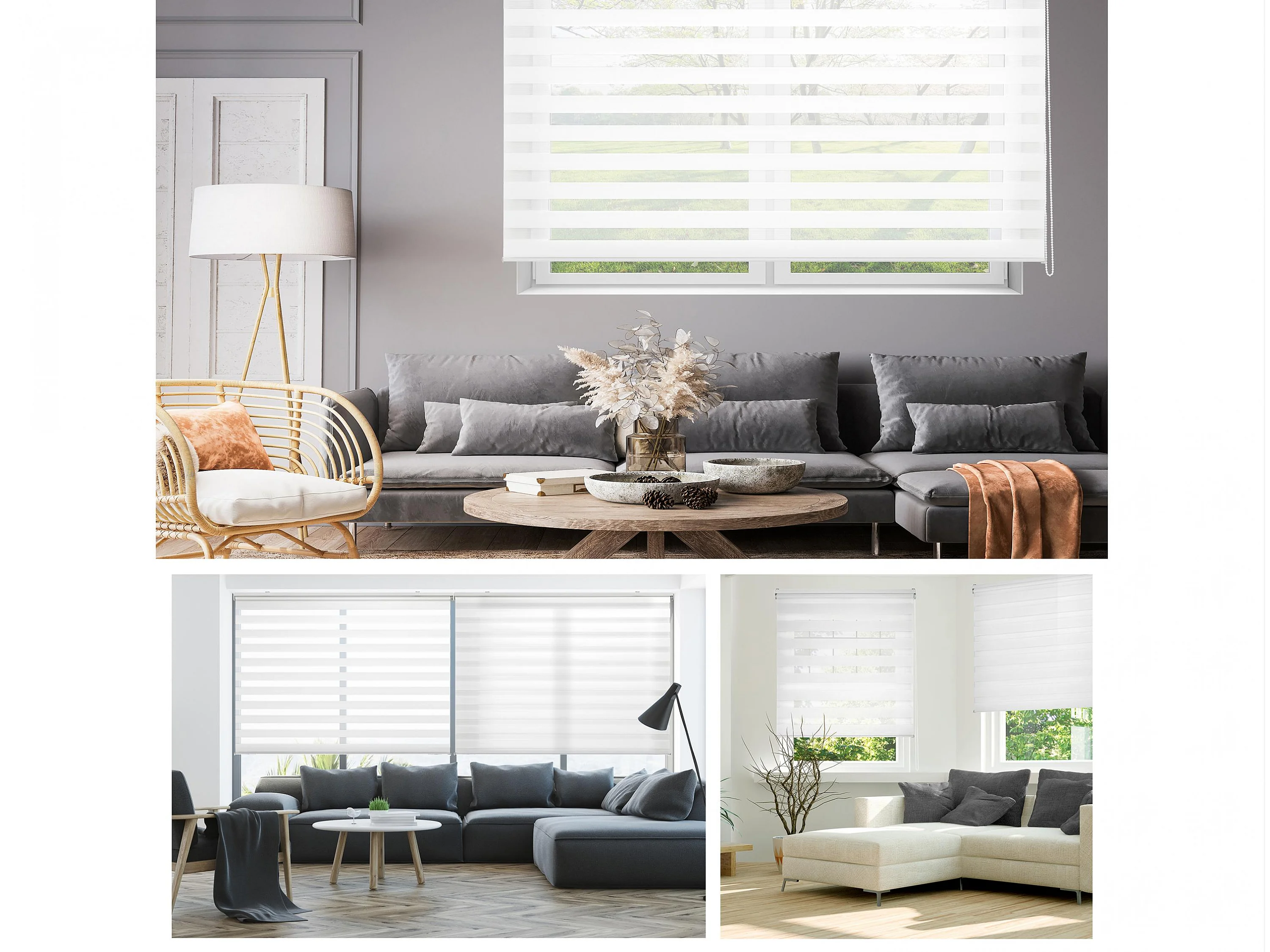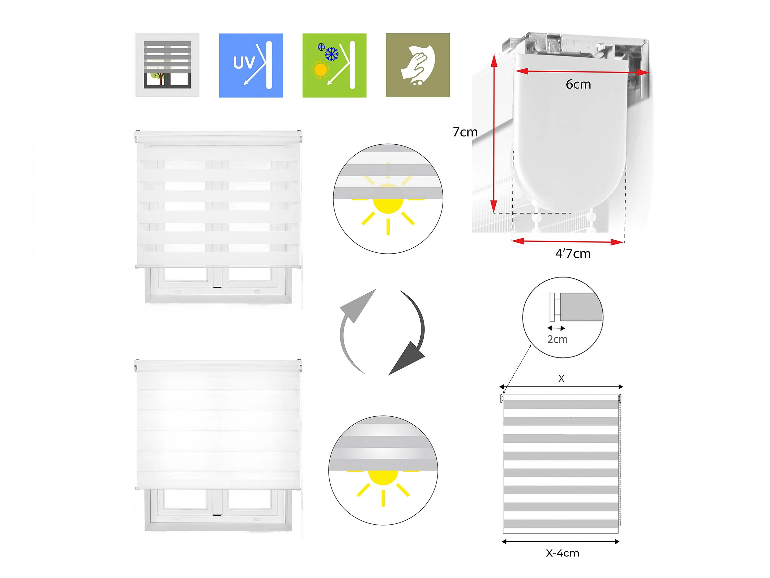 Tweekleurig dag- en nachtrolgordijn met dubbele weving en handketting