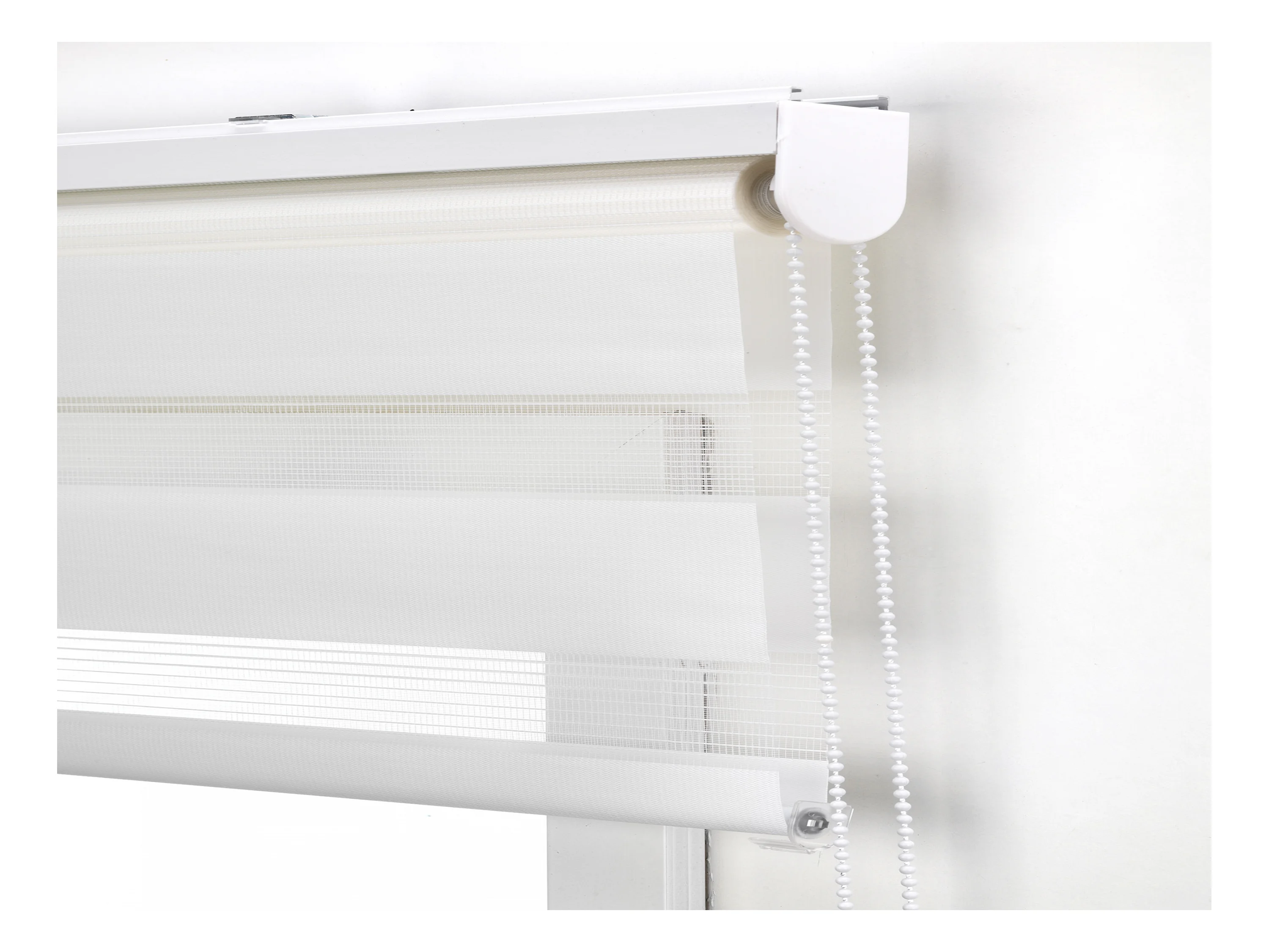 Tweekleurig dag- en nachtrolgordijn met dubbele weving en handketting