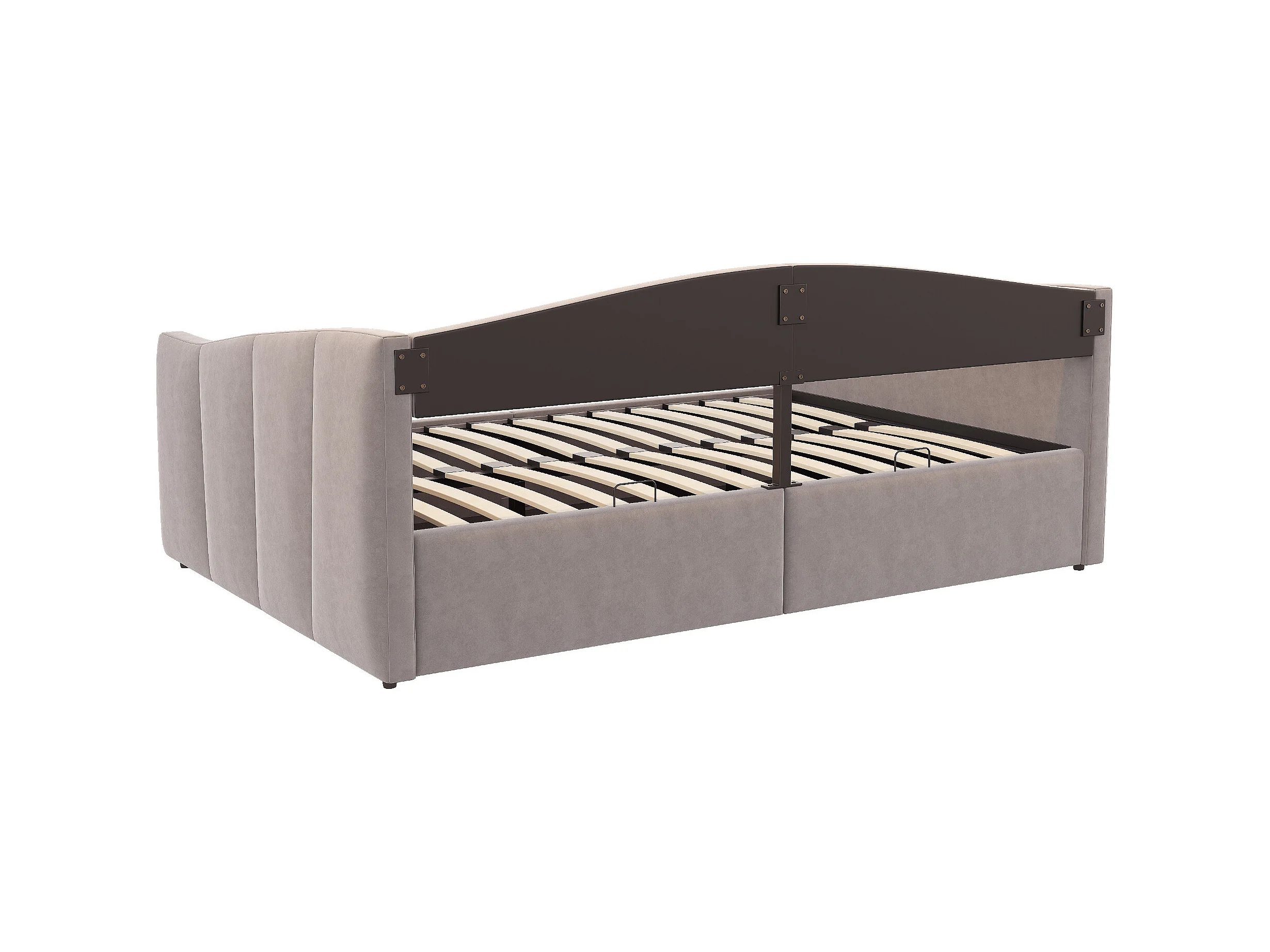 Tweepersoonsbed 140x200 cm met hydraulische opbergruimte, slaapbank met lattenbodem, lichtgrijs