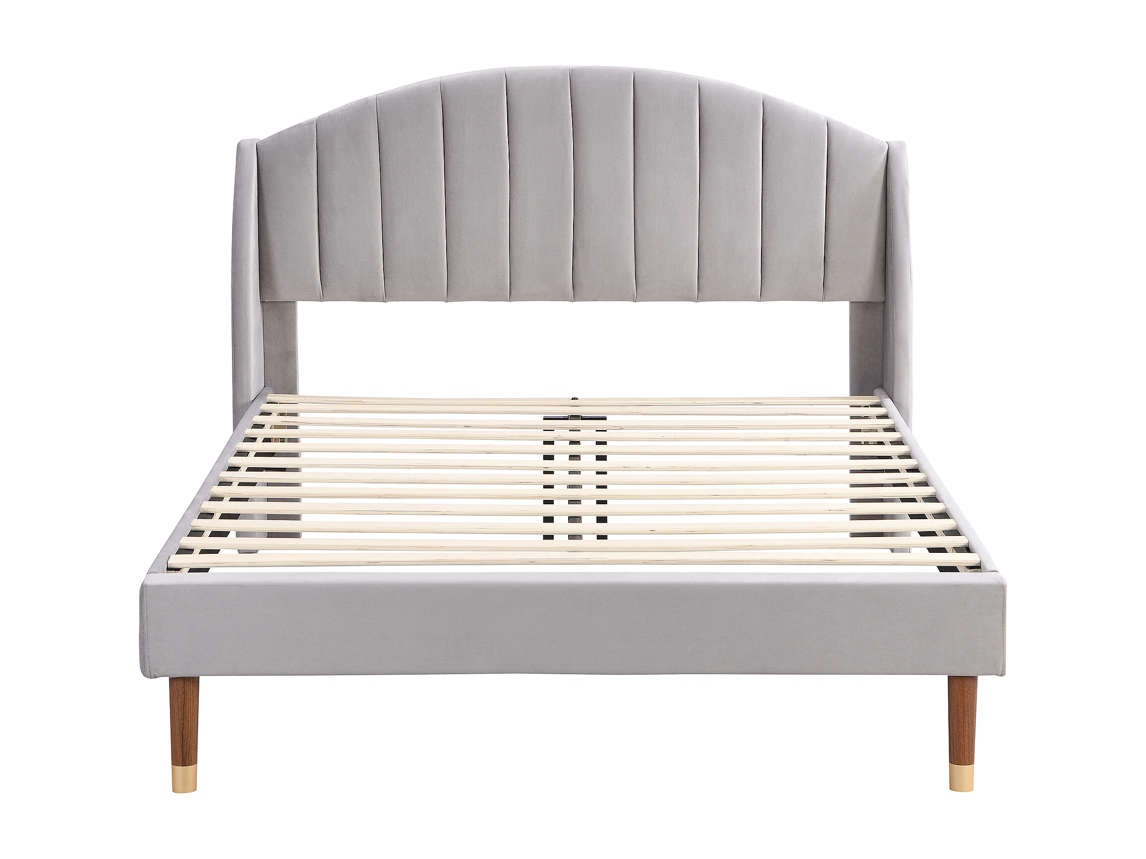 Tweepersoonsbed 140x200 cm met lattenbodem - in hoogte verstelbaar hoofdeinde - houten bedframe - grijs fluweel (zonder matras)