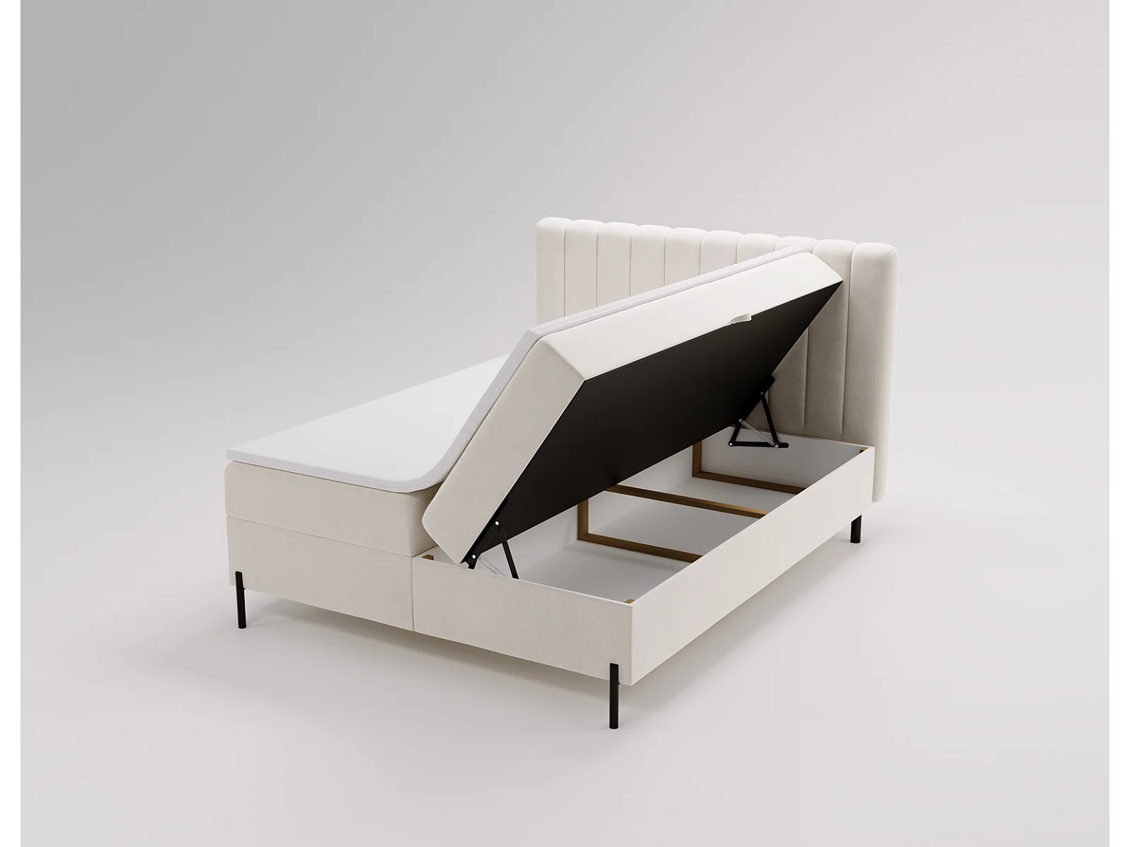Tweepersoonsbed 140x200 Florence Box, gestoffeerd bed met opbergruimte - bed met matras en topper, crème (Komodo 10)