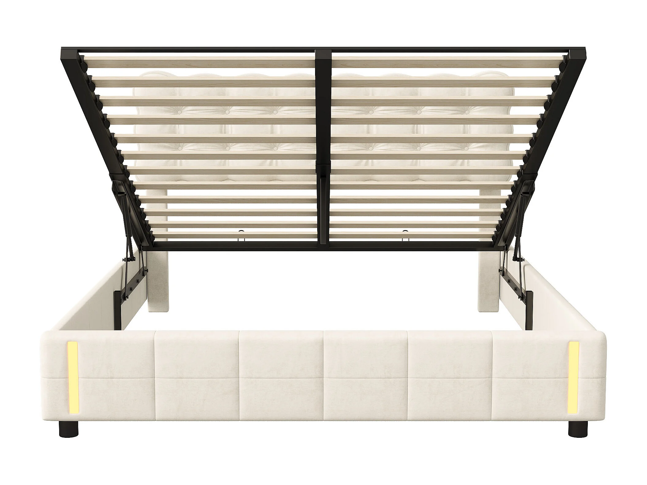 Tweepersoonsbed met opbergruimte - 160 x 200 cm - met 2 leeslampjes + LED's + hydraulische opbergruimte + USB - fluweel - beige