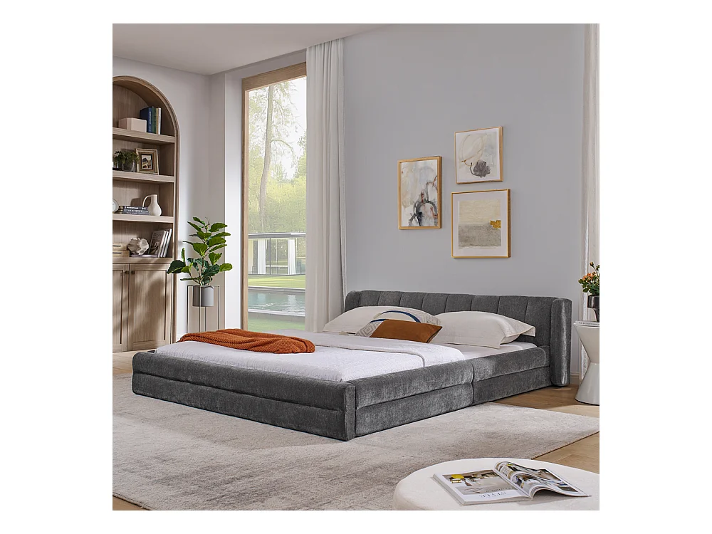 Gestoffeerd bed 160 x 200 cm met langwerpig hoofdeinde en rugleuning - planken - fluweel - grijs