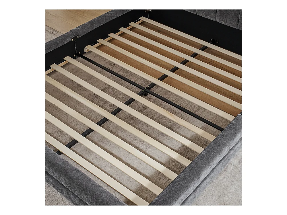 Tweepersoonsbed 160x200 cm, ergonomisch design, zacht chenille, eucalyptus en metalen frame, donkergrijs (160x200x60 cm)